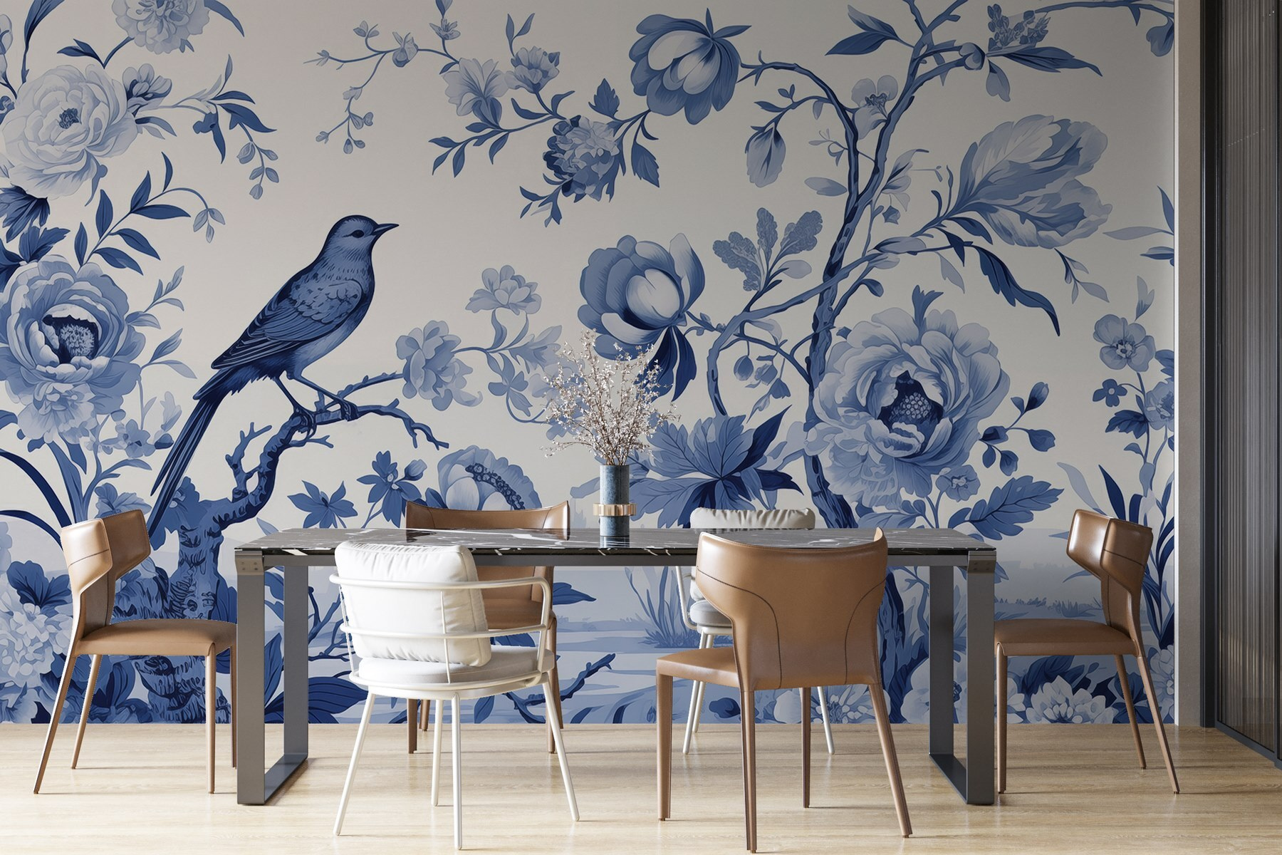 Trasforma una parete semplice in un rifugio da sogno con questo splendido murale raffigurante un uccellino appollaiato su un ramo di un albero, circondato da delicati fiori. È come invitare una leggera brezza nella tua casa. Immagina di sorseggiare il tuo caffè mattutino e di sentirti trasportato in un giardino sereno, con i rilassanti toni blu e lo squisito stile acquerellato che ammorbidiscono la stanza. Questo murale non è solo un elemento decorativo, ma anche uno spunto di conversazione, un momento per fermarsi e godersi le piccole meraviglie della vita. Perfetto per un angolo accogliente o per quella parete che ha bisogno di un po’ d’amore, dona immediatamente calore e fascino. Le tue pareti ti ringrazieranno!