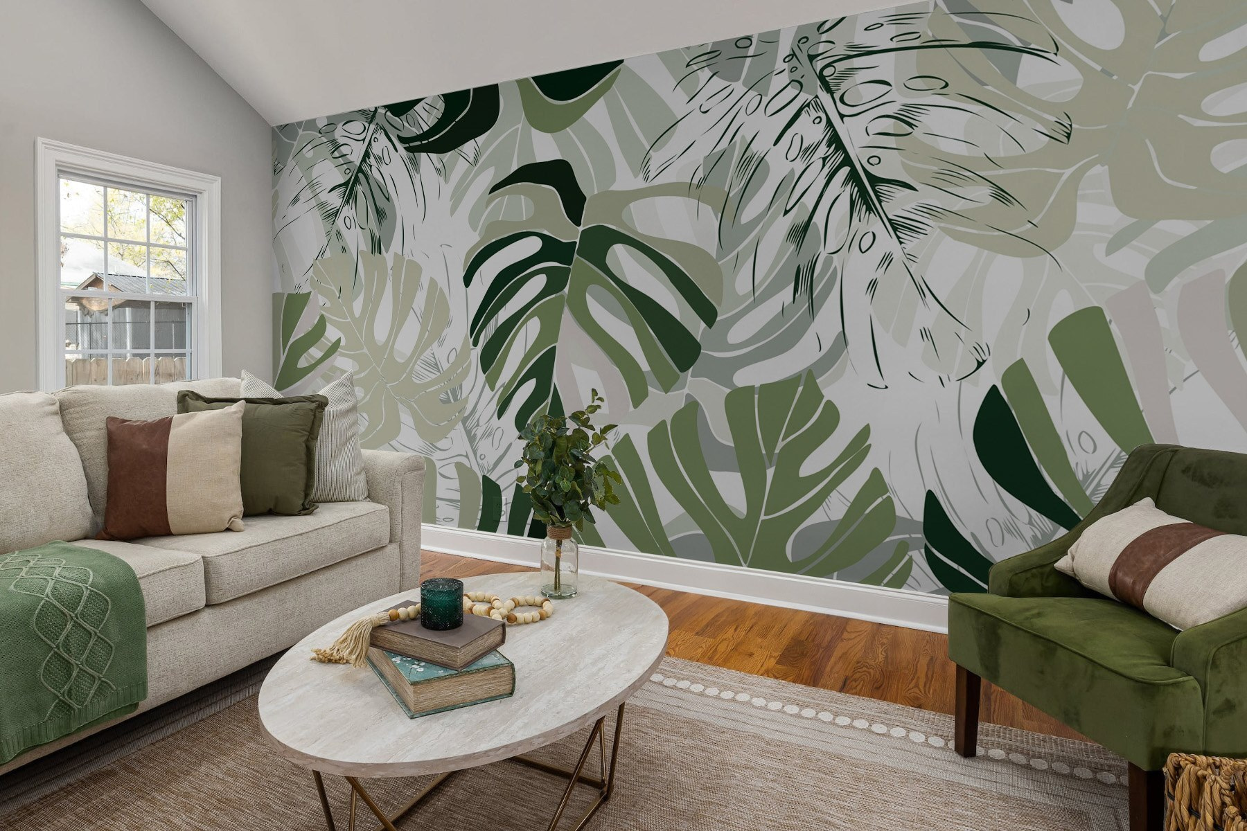 Trasformate una parete semplice in un’evasione vivace con questo bellissimo murale con motivo a foglie. Immaginatevi il sole che filtra dalla finestra, con queste foglie verdi che danzano su uno sfondo bianco. È come una giungla indoor senza i fastidiosi insetti! Questo disegno aggiunge un’atmosfera rinfrescante a qualsiasi stanza, perfetta per un accogliente angolo lettura o per ravvivare un corridoio noioso. Immaginate di sorseggiare un caffè circondati da questo allegro fogliame, sentendovi come in una fuga tropicale. È invitante, fresco e trasuda il fascino della natura. Preparatevi a dare vita al vostro spazio!