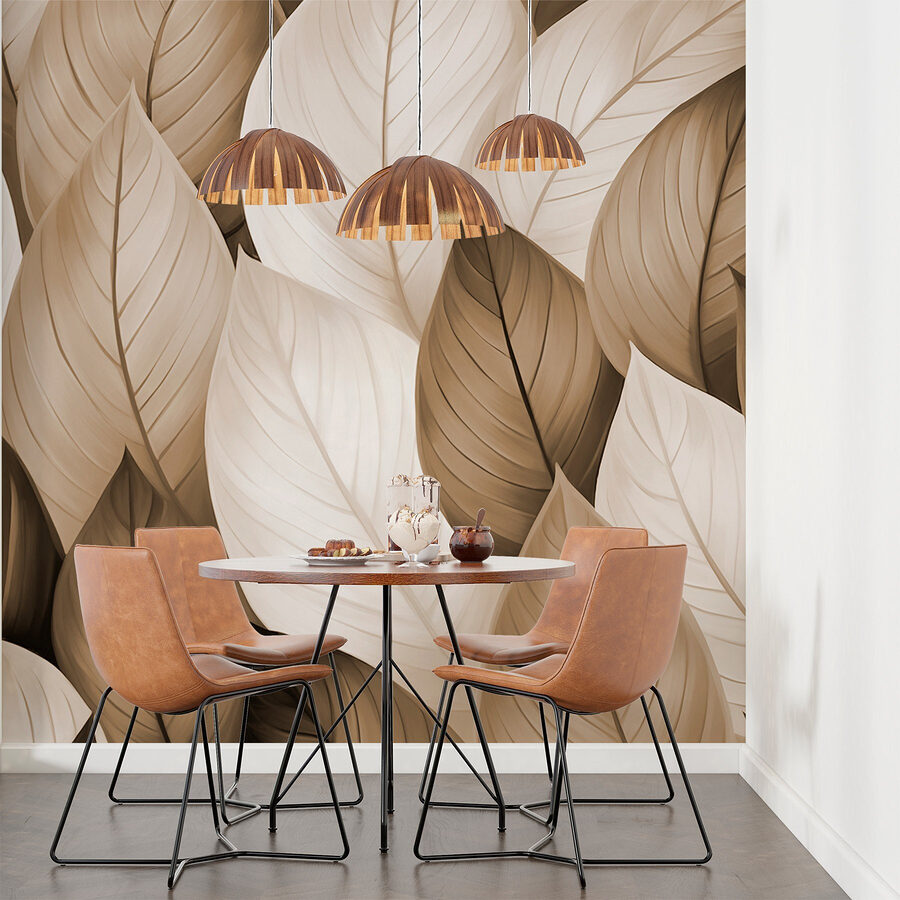 Trasforma qualsiasi stanza in un’oasi di serenità con questo splendido murale che raffigura un intreccio di foglie marroni e bianche. Immagina di entrare e di essere avvolto dal tranquillo abbraccio della natura. Le tonalità tenui creano un’atmosfera calda, perfetta per serate accoglienti o mattinate luminose e soleggiate. È come avere un angolo di natura direttamente a casa tua, senza insetti! Immagina un incontro con gli amici, tutti rilassati e felici, proprio perché le pareti sembrano una foresta tranquilla. Perfetto per un soggiorno o anche per una tranquilla camera da letto: a pochi passi da una mini vacanza ogni giorno!