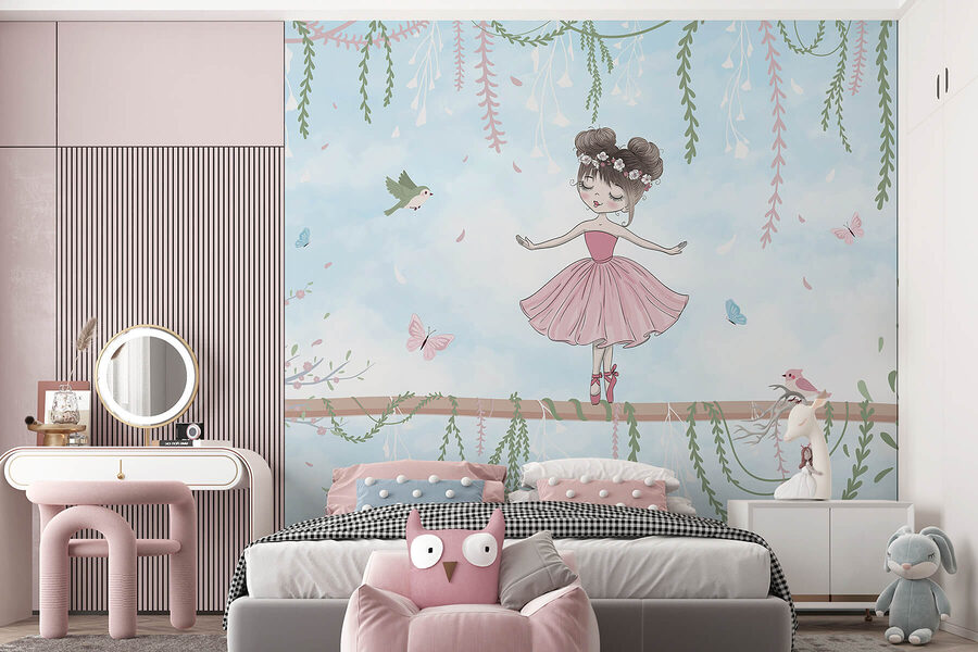 Entra in un mondo da sogno con questo incantevole murale che raffigura un’affascinante ragazza in un vestito rosa, perfettamente in equilibrio su un ramo. Circondata da farfalle svolazzanti e uccellini giocherelloni, sembra una scena uscita da una deliziosa fiaba. Immagina come potrebbe rallegrare un accogliente angolo lettura o portare gioia nella cameretta di un bambino. I colori tenui e i dettagli stravaganti invitano al sorriso, rendendo ogni sguardo simile a un caldo abbraccio. Immagina di sorseggiare un tè, ammirando la sua grazia e perdendoti nelle storie che lei ispira: chi non lo vorrebbe? Questo murale non è solo un elemento decorativo, è una fuga magica!
