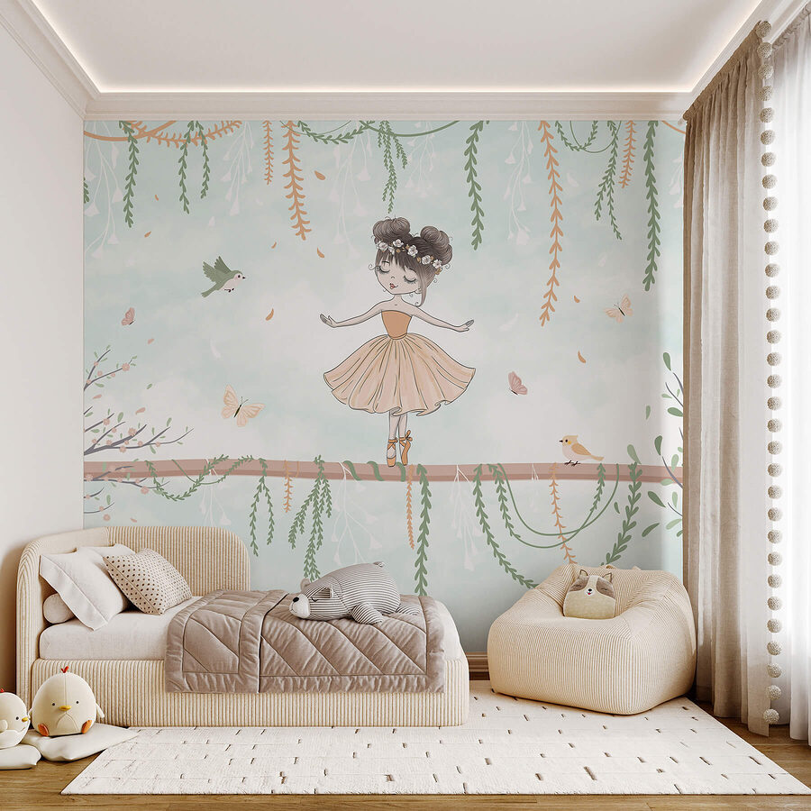Immaginate una fuga stravagante proprio sulle vostre pareti! Questo affascinante murale raffigura una deliziosa ragazza che danza su un ramo, circondata da farfalle svolazzanti e uccellini curiosi. Il morbido sfondo pastello crea un’atmosfera serena, trasformando qualsiasi stanza in un rifugio da sogno nella foresta. È perfetto per stimolare la fantasia dei più piccoli o semplicemente per aggiungere un tocco di magia alla cameretta o alla stanza dei giochi. Immaginate la lettura di una fiaba che si trasforma in un’avventura mentre i bambini guardano incantati questa scena, completamente rapiti dalla sua dolcezza. Davvero, chi non vorrebbe volteggiare felicemente insieme a lei? Un tocco di gioia per pareti che richiedono un sorriso!