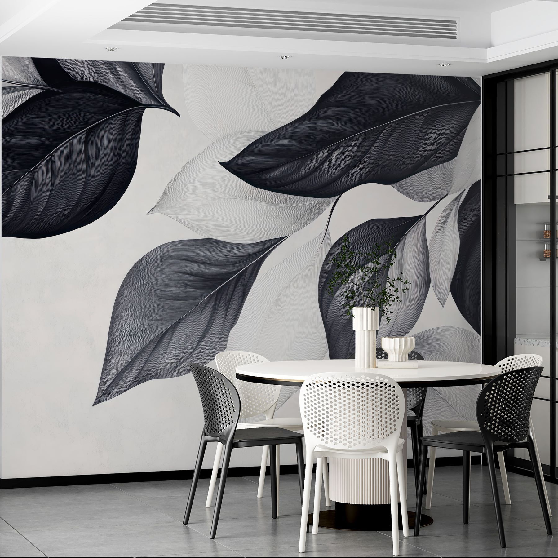 Transforming a wall with the “Delicate Leaves in Monochrome Hues” mural feels like inviting nature indoors without the worry of watering plants! These beautifully detailed leaves dance gracefully across a soft backdrop, bringing a serene vibe that whispers relaxation. Imagine sitting down with a cup of tea, feeling instantly calmer just by gazing at those elegant shapes. Perfect for that nook where you love to unwind or even a cozy dining area. It’s like having a little piece of artistry that somehow makes the whole room feel fresh. Brighten your space, embrace simplicity—who knew a mural could do that?