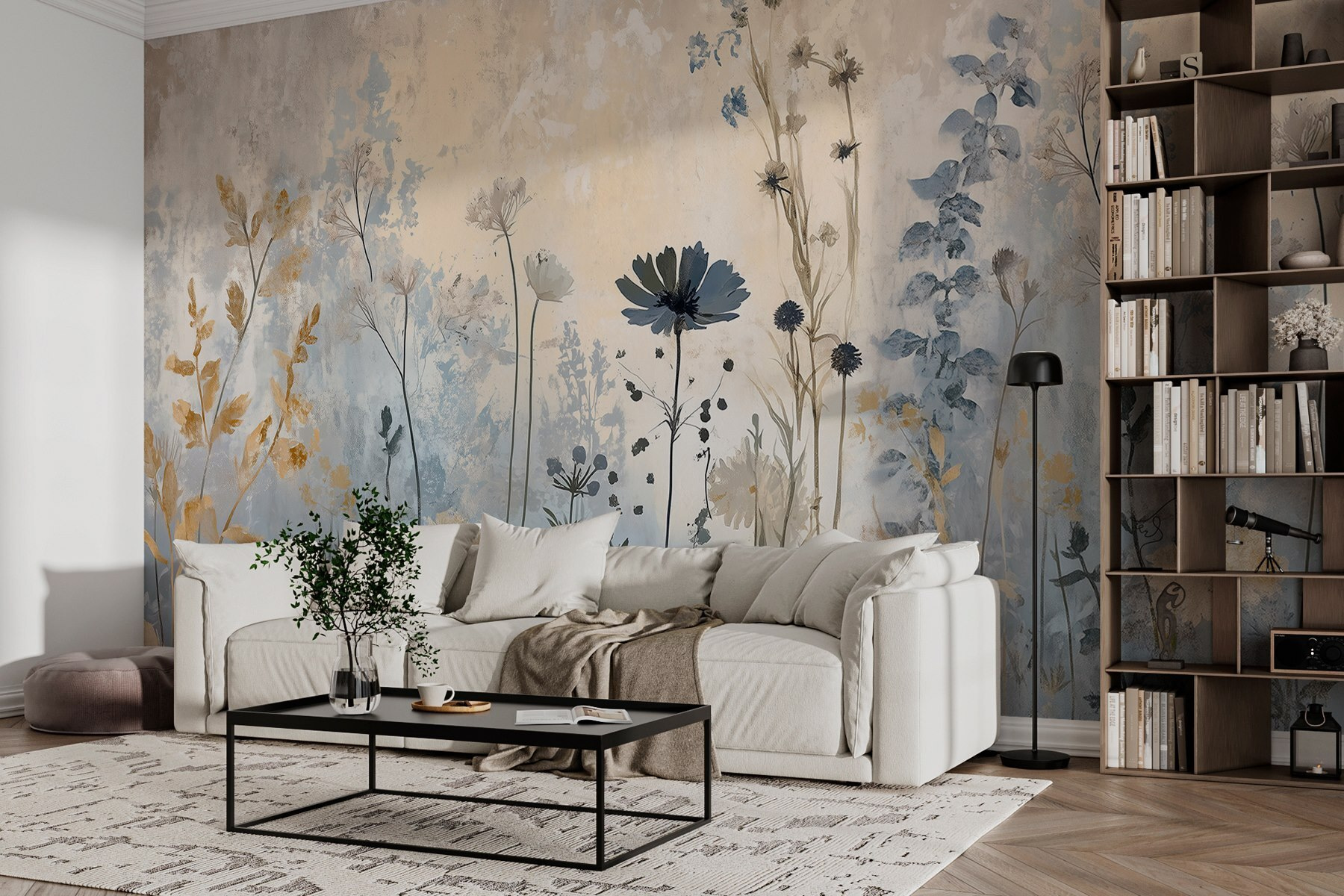 1 recensione per Carta da parati Pittura di fiori su una parete