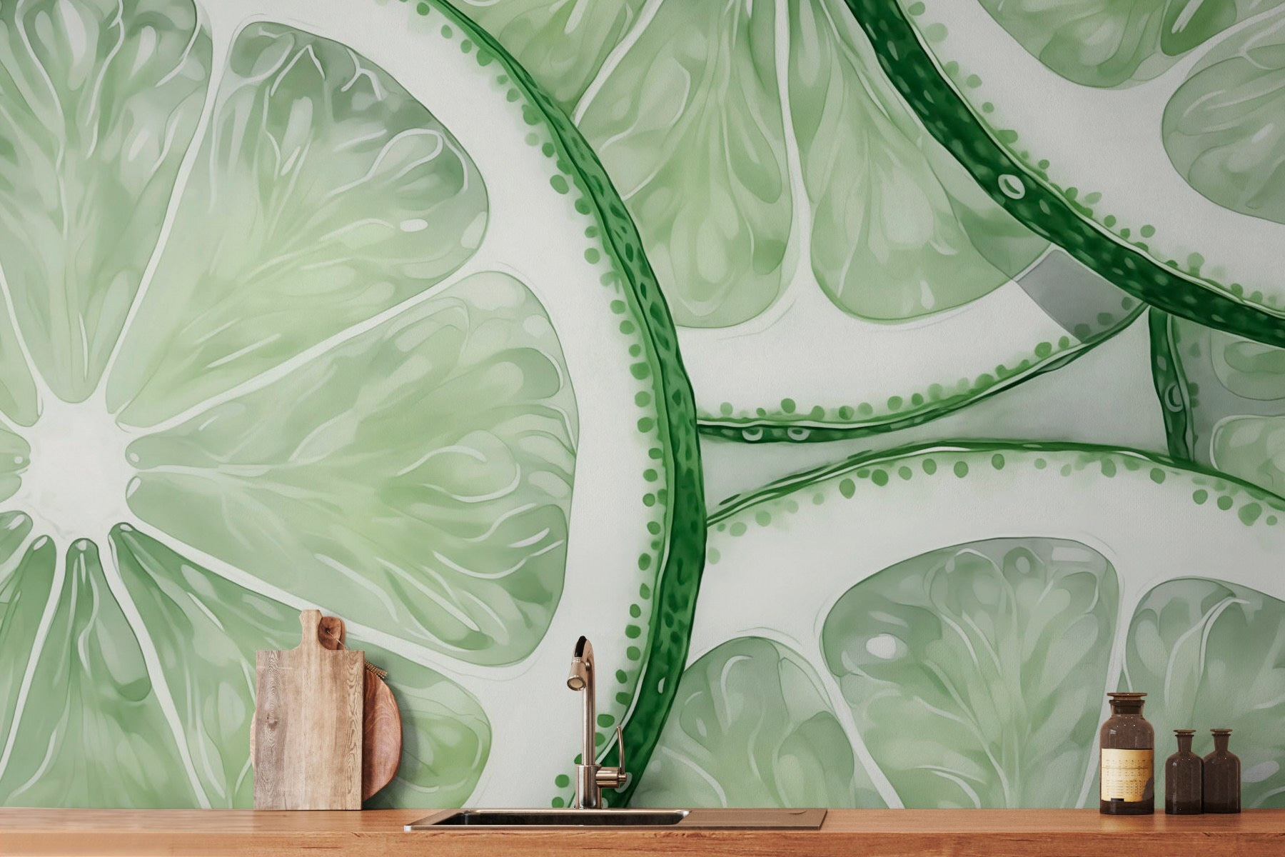 Date un tocco di vivacità al vostro spazio con questo affascinante murale di fette di lime fresco impilate. È luminoso, giocoso e perfetto per ravvivare una cucina o una zona pranzo. Immaginate di ospitare una cena: l’atmosfera è quella delle risate, del buon cibo e forse anche di qualche margarita. I verdi vivaci e i dettagli intricati fanno sembrare che si stia entrando in un mercato della frutta. Inoltre, il lime ha qualcosa di così rinfrescante: aggiunge un senso di energia senza essere opprimente. Perfetto per chi crede nel potere di un’atmosfera allegra. Godetevi l’esplosione di creatività di questo murale e guardate le vostre pareti trasformarsi in un vivace spunto di conversazione.
