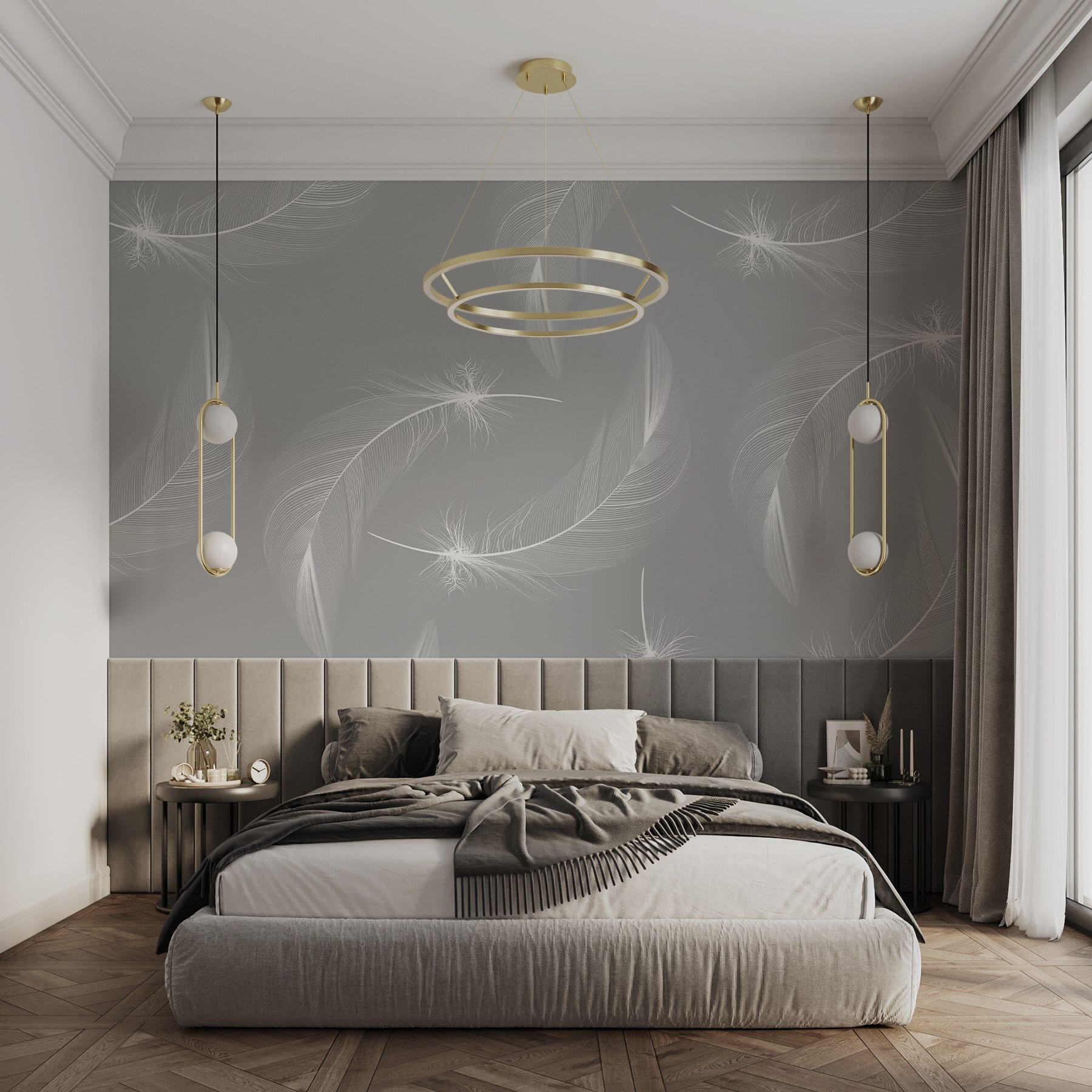 Trasformate qualsiasi spazio in un santuario sereno con questi murales che raffigurano delicate piume bianche che danzano su un morbido sfondo grigio. È come avere una leggera brezza in casa, che sussurra una calma elegante. Immaginate di entrare in una stanza che vi sembrerà immediatamente più leggera, dove ogni sguardo vi trasporterà in una fuga da sogno. Perfette per un accogliente angolo lettura o per una camera da letto tranquilla, queste piume sono in grado di ammorbidire l’atmosfera. Invitano a sognare ad occhi aperti e ispirano tranquillità, rendendo difficile non sorridere un po’. Chi non si sentirebbe sollevato da una vista così affascinante?
