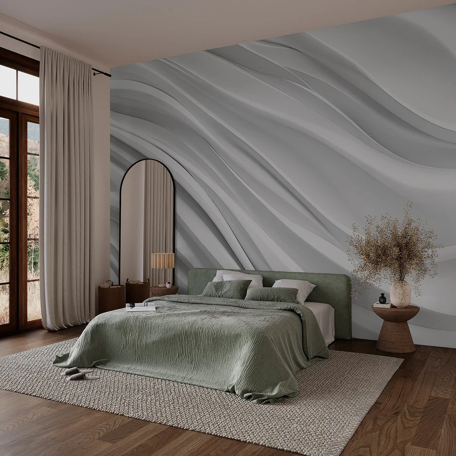 Its sleek, wavy lines add depth and movement, effortlessly blending modern elegance with a cozy, inviting touch. Whether it’s a chic living room or a serene home office, this mural wraps the walls in a soft embrace that almost whispers “relax.” Feeling the stress of the day? Just gaze at those lines and let your mind drift. Seriously, it’s like a mini vacation right at home. Grab a coffee, settle in, and enjoy the blend of style and serenity—it’s a little piece of wall art magic waiting for you!