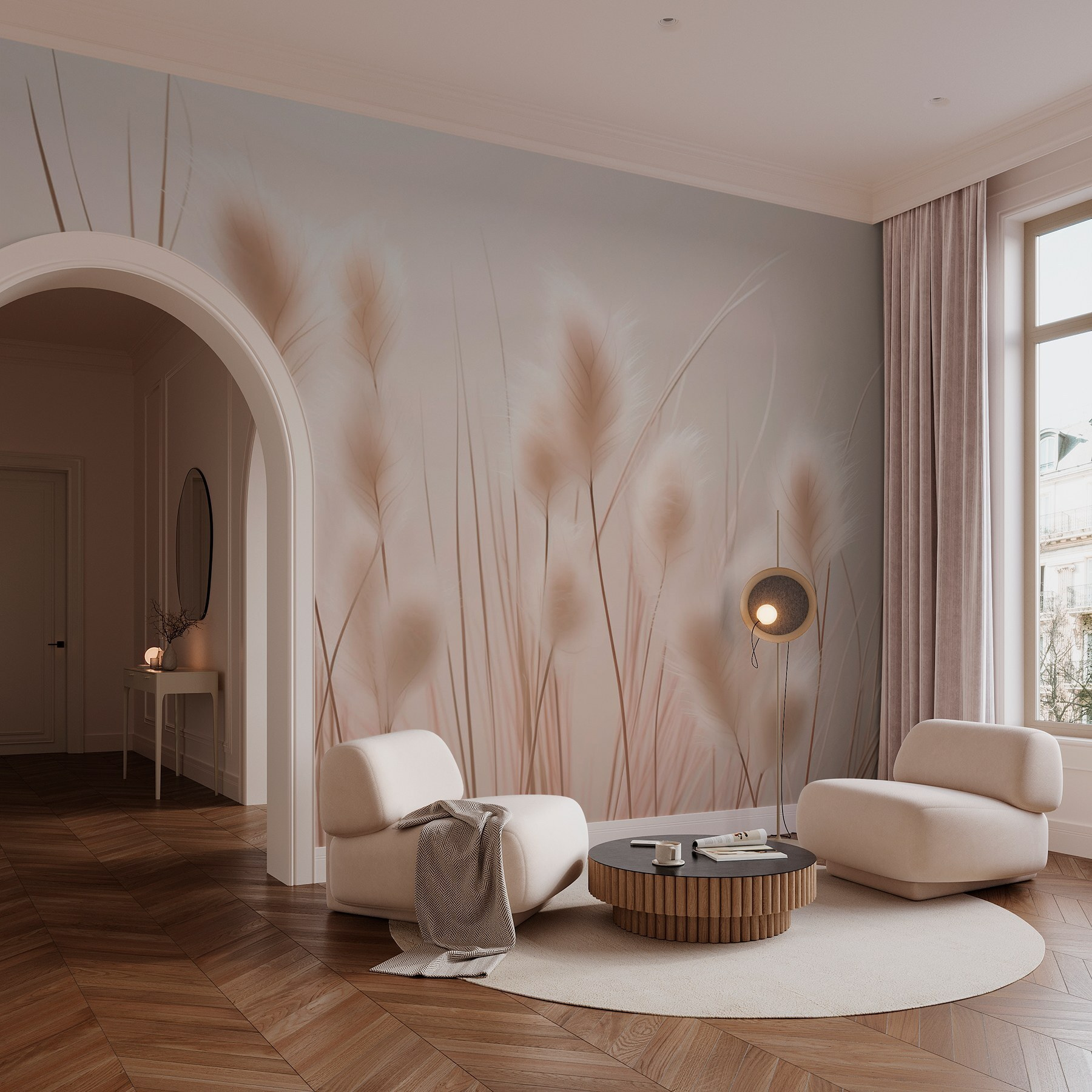 Transform a plain wall into a serene escape with the “Soft Grasses in Gentle Hues” mural. This design whispers calm vibes, perfect for creating a cozy nook where you can sip tea and let the world fade away. Imagine stepping into a sunlit field, feeling that soft breeze ruffle the grass—now that’s a mood! The muted tones add a touch of elegance without being too loud. It’s like having nature right in your living space, minus the bugs. Perfect for a bedroom or reading corner, this mural will remind you to take a breath and just be.