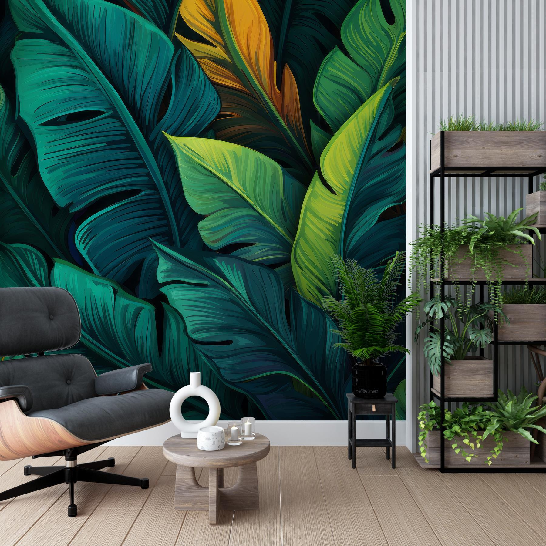 Imagine stepping into a room that feels like a tropical oasis—no plane ticket required. This “Vibrant Foliage” mural wraps you in lush greens and sunny yellows, instantly boosting your mood. It’s like having a slice of nature in your living space without the pesky bugs. Picture hosting a relaxed brunch with friends, surrounded by this vibrant scenery—it’s bound to spark conversation. Lean back and let the mesmerizing leaves take you to a dreamy escape. Perfect for any wall that needs a touch of life! Who knew foliage could feel so refreshing?