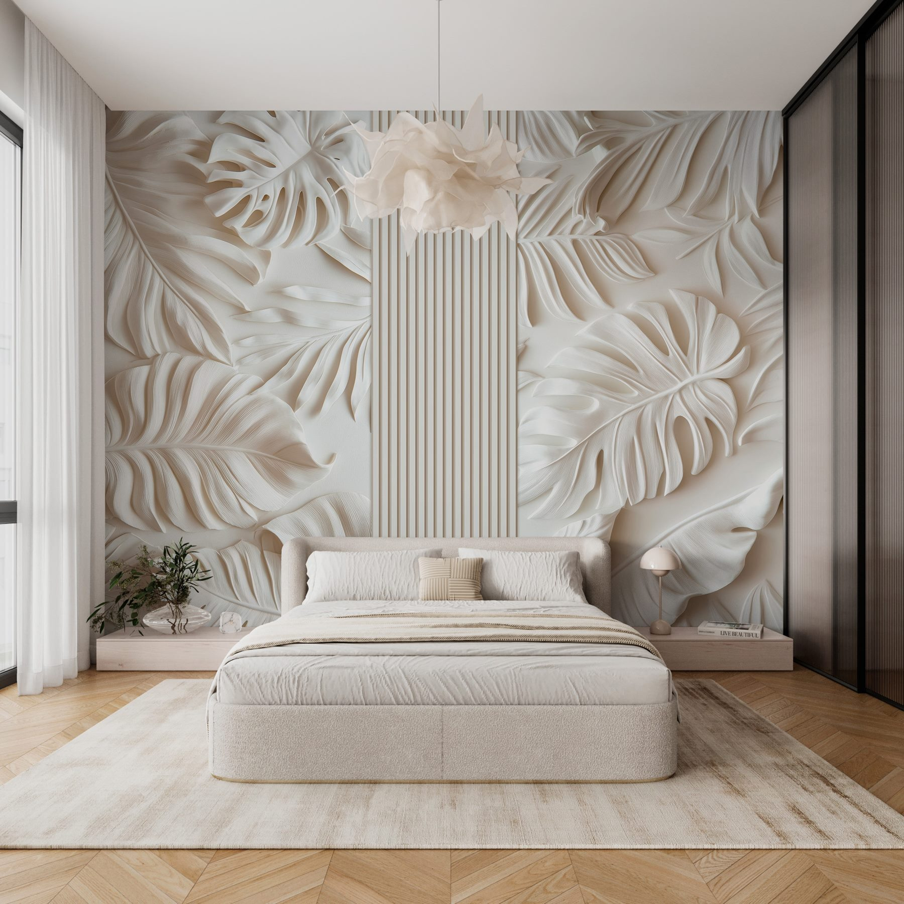 Trasformate qualsiasi stanza in un’oasi serena con questo splendido murale con foglie lussureggianti su uno sfondo bianco. Immaginate di entrare in un paradiso tropicale ogni volta che entrate nel vostro spazio. I dettagli intricati delle foglie creano un senso di profondità, quasi come se si stessero protendendo per darvi il benvenuto. Si abbina perfettamente alla luce naturale, rendendo la stanza ariosa e luminosa, come se aveste aperto una finestra su un giardino lussureggiante. Perfetto per un accogliente angolo lettura o anche per un ingresso chic, questo murale invita a un tocco di natura in casa. Inoltre, chi non ama un po’ di verde? È come avere un pezzo di paradiso proprio a casa.