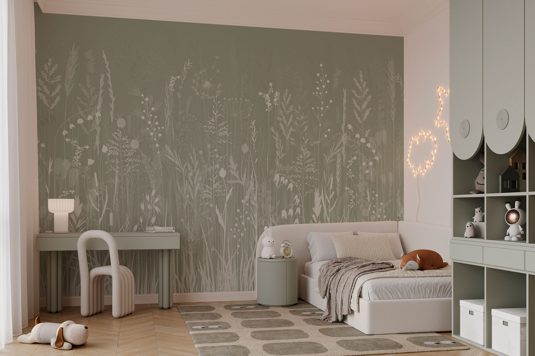 Immaginate di entrare in un campo tranquillo, dove i fiori selvatici danzano dolcemente nella brezza e l’erba sussurra dolci segreti. Questo murale, intitolato “Campo d’erba con fiori”, cattura perfettamente quell’atmosfera tranquilla. È come portare un piccolo pezzo di natura in casa, senza insetti o macchie d’erba! I verdi tenui e i delicati fiori creano uno sfondo rilassante, perfetto per sognare ad occhi aperti o sorseggiare un tè. È un modo semplice per rendere uno spazio accogliente e invitante. Immaginatelo in un angolo lettura o in un corridoio soleggiato: una vera boccata d’aria fresca! Non sarebbe bello avere un ricordo costante della bellezza della natura proprio a casa vostra?