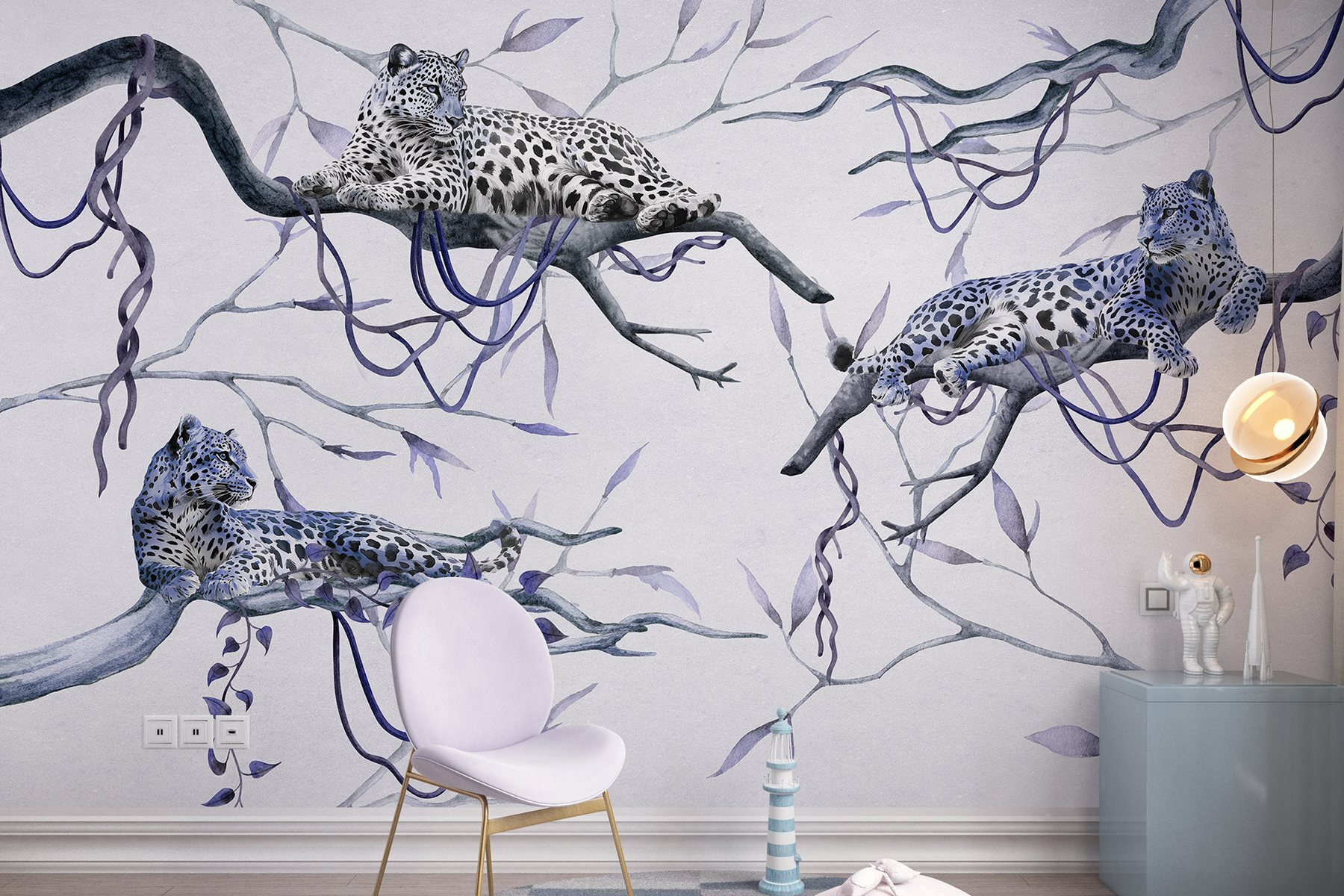 Trasforma il tuo spazio in un paradiso selvaggio con questo affascinante murale raffigurante leopardi sdraiati sui rami. Immagina di svegliarti e sentirti come se fossi entrato in una foresta serena. Questi magnifici felini, con le loro macchie suggestive e il loro comportamento calmo, danno un’atmosfera particolare alla stanza. Perfetto per un soggiorno o un angolo accogliente, questo murale non è solo un elemento decorativo, è come avere un piccolo angolo di natura direttamente a casa tua. I colori tenui e le illustrazioni dettagliate invitano a sognare ad occhi aperti avventure tropicali, offrendo al contempo relax. È il luogo in cui la fauna selvatica incontra il calore: chi non lo vorrebbe?
