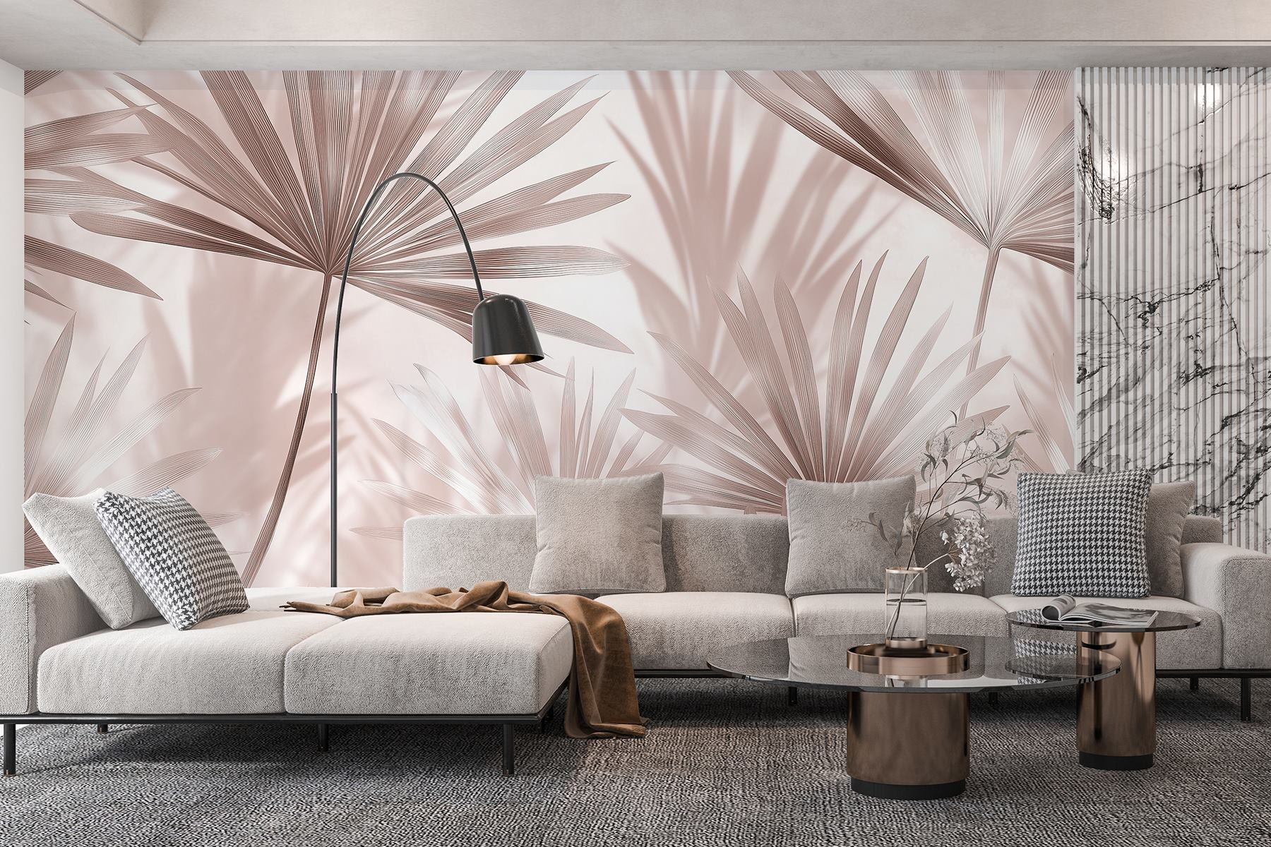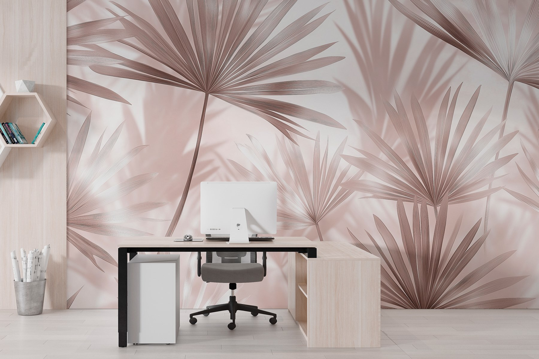 Guardate esattamente come apparirà il vostro spazio con la nuova carta da parati prima di acquistarla. Visualizzazione professionale da parte di designer esperti senza alcun costo o obbligo di acquisto.