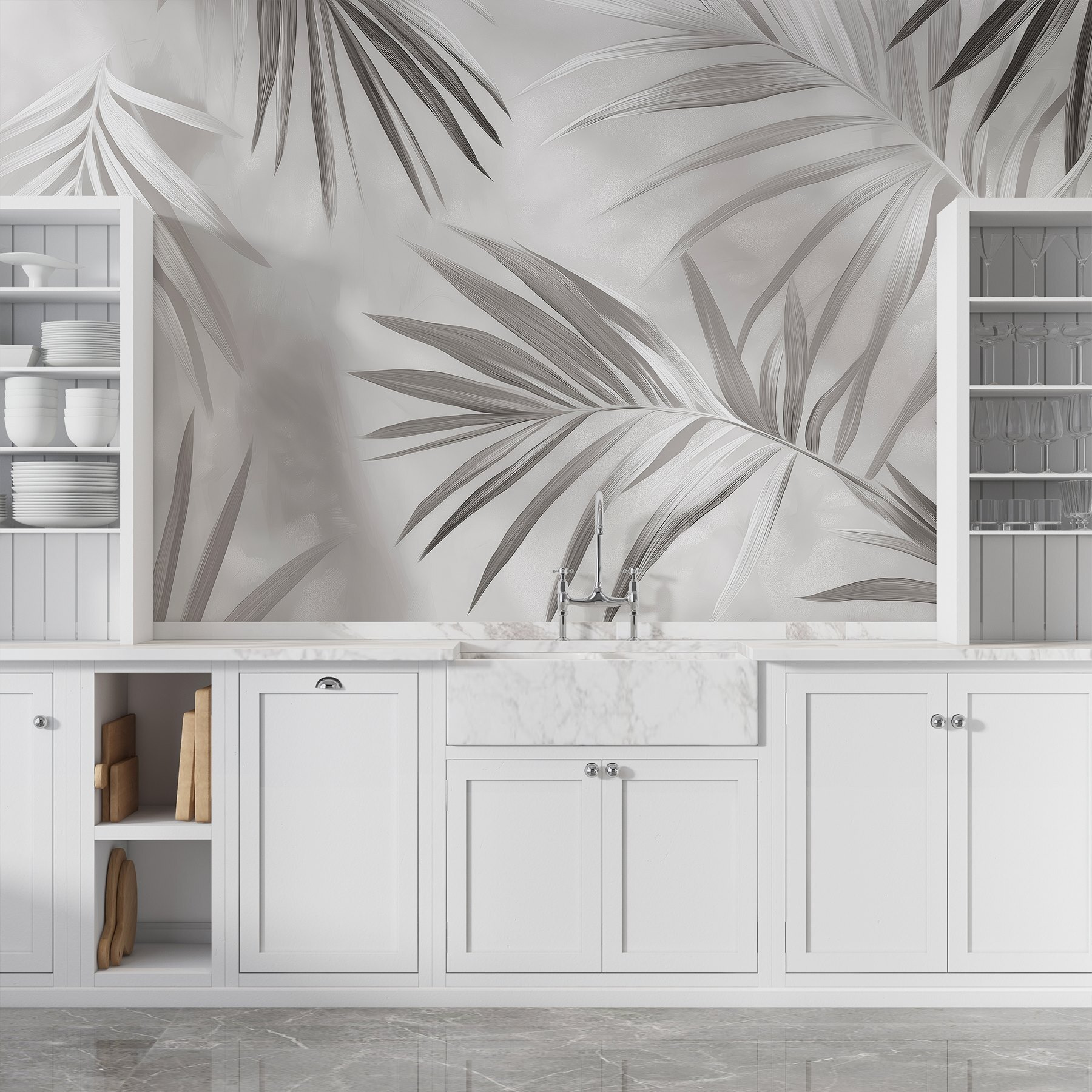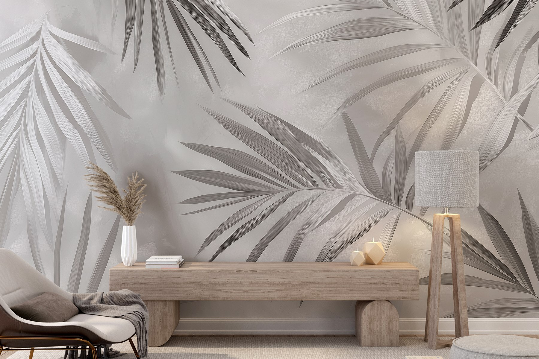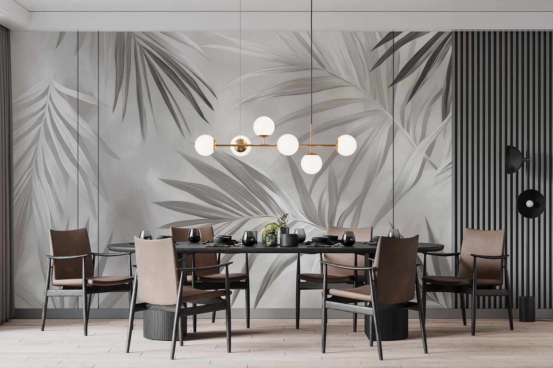 Trasforma qualsiasi parete in un rifugio sereno con questo splendido murale monocromatico con foglie morbide. Immagina di entrare in un boschetto tranquillo ogni volta che guardi la tua parete. Il movimento delicato delle foglie, avvolte in rilassanti tonalità di grigio, crea un senso di calma perfetto per gli spazi dedicati al relax, come accoglienti salotti o tranquille camere da letto. È come portare un pezzo di natura in casa, senza insetti! Inoltre, i toni delicati lo rendono facile da abbinare a qualsiasi stile di arredamento. I tuoi amici potrebbero persino pensare che tu abbia assunto un designer… shh, è il tuo piccolo segreto!