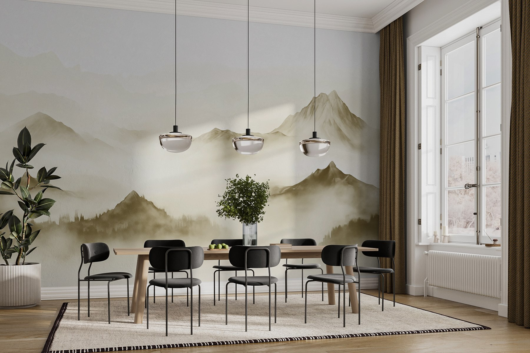 Trasforma una parete anonima in un rifugio da sogno con il murale “Foggy Mountain Range”. Immagina di svegliarti circondato da morbide cime acquerellate avvolte nella nebbia, che trasmettono un senso di calma e avventura. È come avere la bellezza della natura direttamente nel tuo salotto, senza bisogno di scarponcini da trekking! I toni caldi e terrosi aggiungono un’atmosfera accogliente, perfetta per sorseggiare un caffè o rannicchiarsi con un buon libro. Inoltre, è un modo semplice per stupire gli amici quando vedono il tuo spazio: “Oh wow, sei così artistico!” Fidati di noi, questo murale potrebbe semplicemente scatenare quelle conversazioni profonde sulla vita o persino ispirare una fuga spontanea. Perfetto per chiunque desideri un po’ di natura senza il fango!