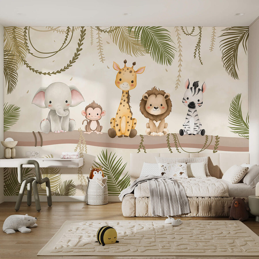 Trasformate il vostro spazio in una vivace giungla con questo delizioso murale che raffigura un adorabile gruppo di amici animali appollaiati su un robusto ramo. Immaginate: una scimmia impertinente, un elefante gentile, un’affascinante giraffa, un leone amichevole e una zebra giocosa, tutti pronti a portare gioia e calore alle vostre pareti. È come avere un mini safari a casa. Perfetto per la stanza dei giochi o per un angolo accogliente, questo murale invita al sorriso e stimola l’immaginazione. Chi non vorrebbe tornare a casa con un gruppo di facce amiche? Perfetto per i bambini di tutte le età o semplicemente per chiunque abbia un grande cuore per gli animali!