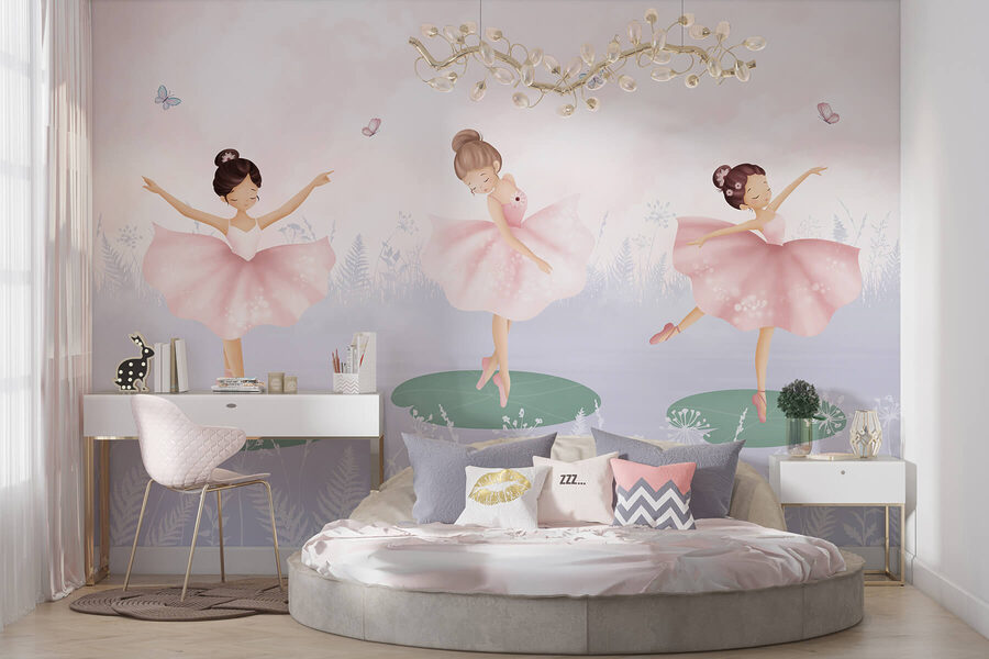 Trasformate la cameretta di un bambino in un paese delle meraviglie da sogno con questo delizioso murale che raffigura un trio di bambine in gonna tutù che danzano sulle ninfee. Immaginate la gioia dei visi dei bambini quando entrano in uno spazio dove le favole prendono vita. Ogni ballerina volteggia con grazia, circondata da farfalle stravaganti e da morbide tonalità pastello che danno un tono tranquillo. È come entrare in un balletto sereno, dove ogni sguardo scatena creatività e risate. Questo murale non è solo un oggetto d’arredo, ma un portale per l’immaginazione, perfetto per suscitare storie di avventure magiche durante i momenti di tranquillità o prima di andare a dormire. Illumina senza sforzo qualsiasi parete, portando fascino e allegria che riempiono la stanza di calore e fantasia.