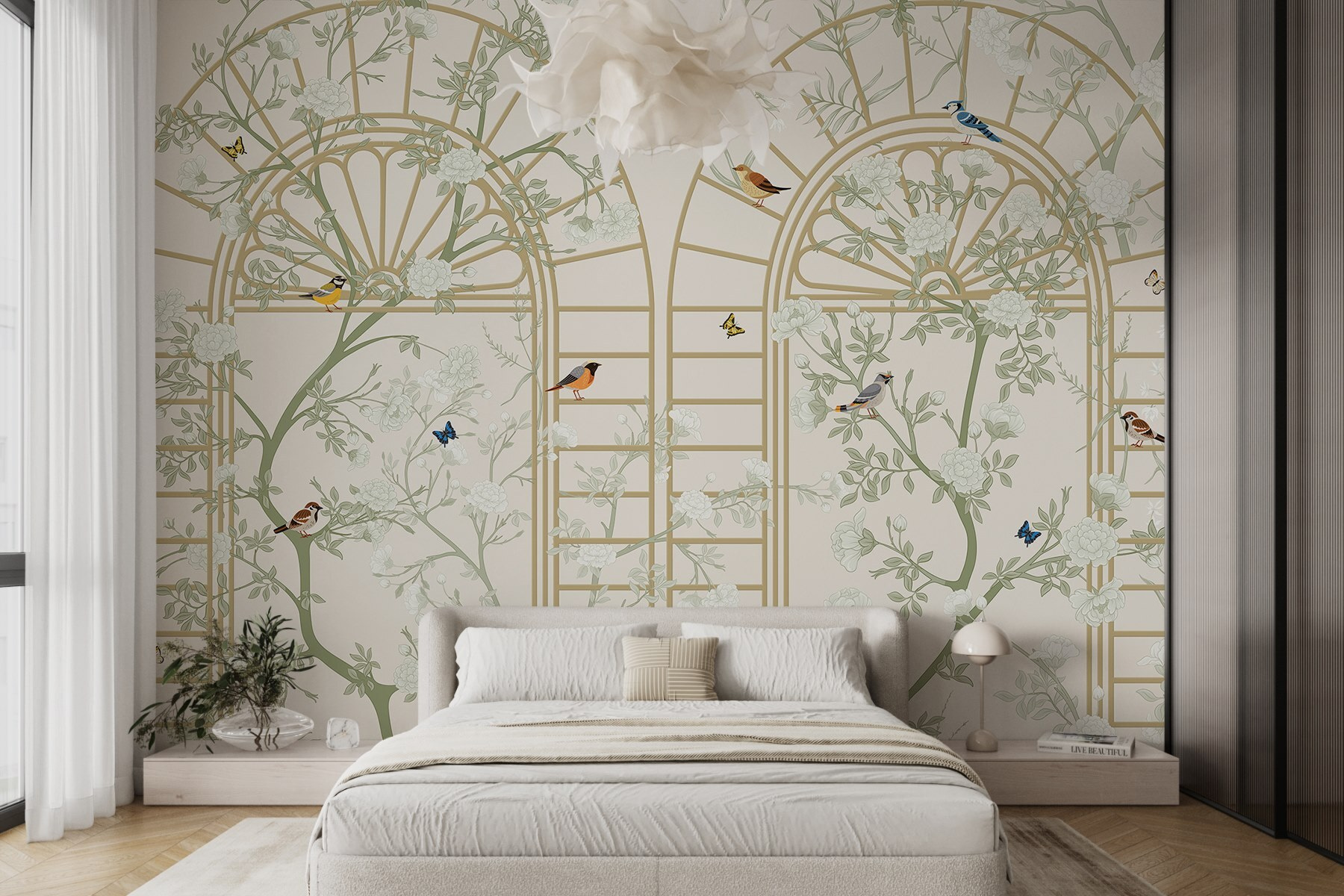 Transform any space into a delightful escape with the “Wall Murals Wallpaper with a Ladder and Birds.” Picture this: you walk into a room, and suddenly it feels like a serene garden, dotted with cheerful birds and delicate blooms. Those charming ladders draw the eye upward, almost inviting daydreams of climbing to new heights or hanging out with feathered friends. Perfect for cozy nooks or lively living rooms, this mural adds a touch of whimsy without going overboard. Imagine sipping tea, surrounded by nature’s beauty, while butterflies flutter in your mind. It’s like bringing a bit of the outdoors inside, minus the pollen! Who wouldn’t want a little slice of tranquility right at home?