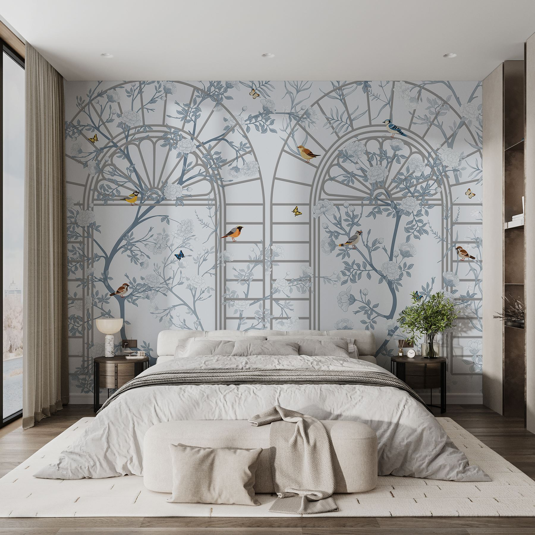 Trasforma il tuo spazio con questo splendido murale che raffigura un mix sognante di uccelli e fiori. Immagina la serenità che trasmette, quasi come una boccata d’aria fresca che ti sussurra: “Ehi, rilassati un po’!”. La delicata scala e l’intricato disegno floreale creano un’atmosfera leggera e ariosa che dà la sensazione di entrare in un giardino tranquillo, anche se l’unica cosa che cresce nella tua casa è quella vecchia pianta sul davanzale della finestra. E quegli uccelli? Sembrano pronti a chiacchierare, come se stessero cantando le melodie più dolci solo per te. Perfetto per un angolo lettura accogliente o un ingresso invitante, questo murale aggiunge un tocco di personalità che dice: “La vita è un po’ stravagante, e va benissimo così!”. Chi non lo vorrebbe?