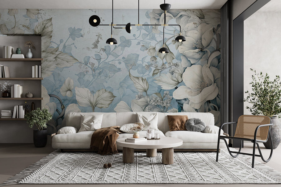 Carta da parati Carta da parati con fiori e foglie (SKU: w03191)