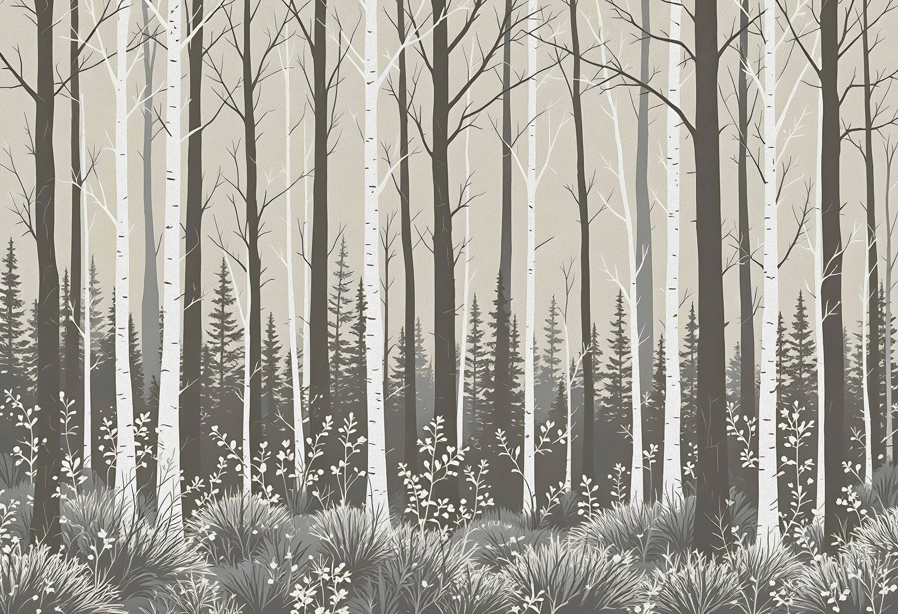 Transform that plain wall into a cozy forest escape with this enchanting “Forest of Trees and Bushes” mural. Imagine stepping into nature every time you stroll by, the soothing shades of gray and warm whites wrapping around you like a soft blanket. It’s perfect for creating a calm reading nook or a serene backdrop for those endless Zoom calls. Just think—friends popping by might ask if you’ve relocated to a woodland cabin! With birch trees standing tall and lively bushes at their feet, it’s like bringing a piece of the outdoors inside. Perfect for nature lovers or anyone needing a breath of fresh air between four walls. Plus, no bugs to deal with—score!