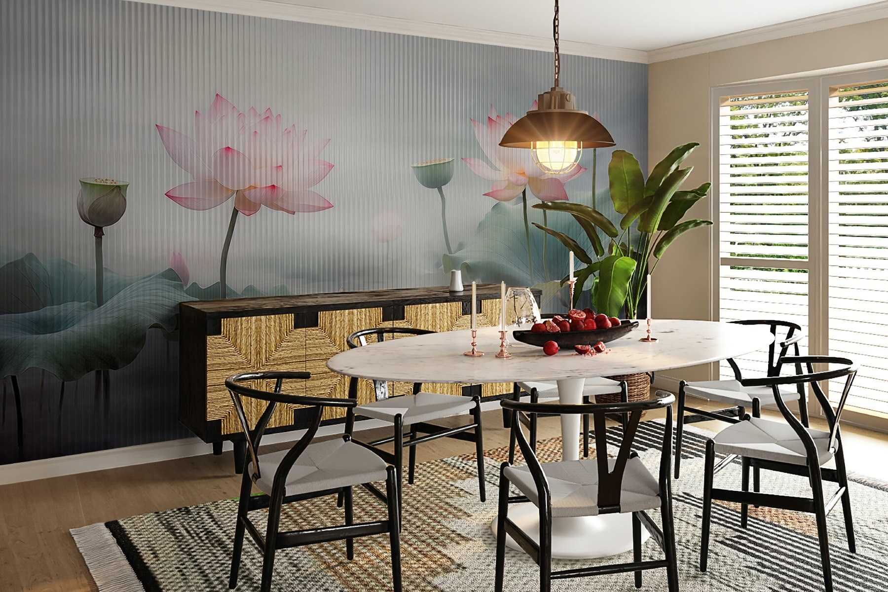Guardate esattamente come apparirà il vostro spazio con la nuova carta da parati prima di acquistarla. Visualizzazione professionale da parte di designer esperti senza alcun costo o obbligo di acquisto.