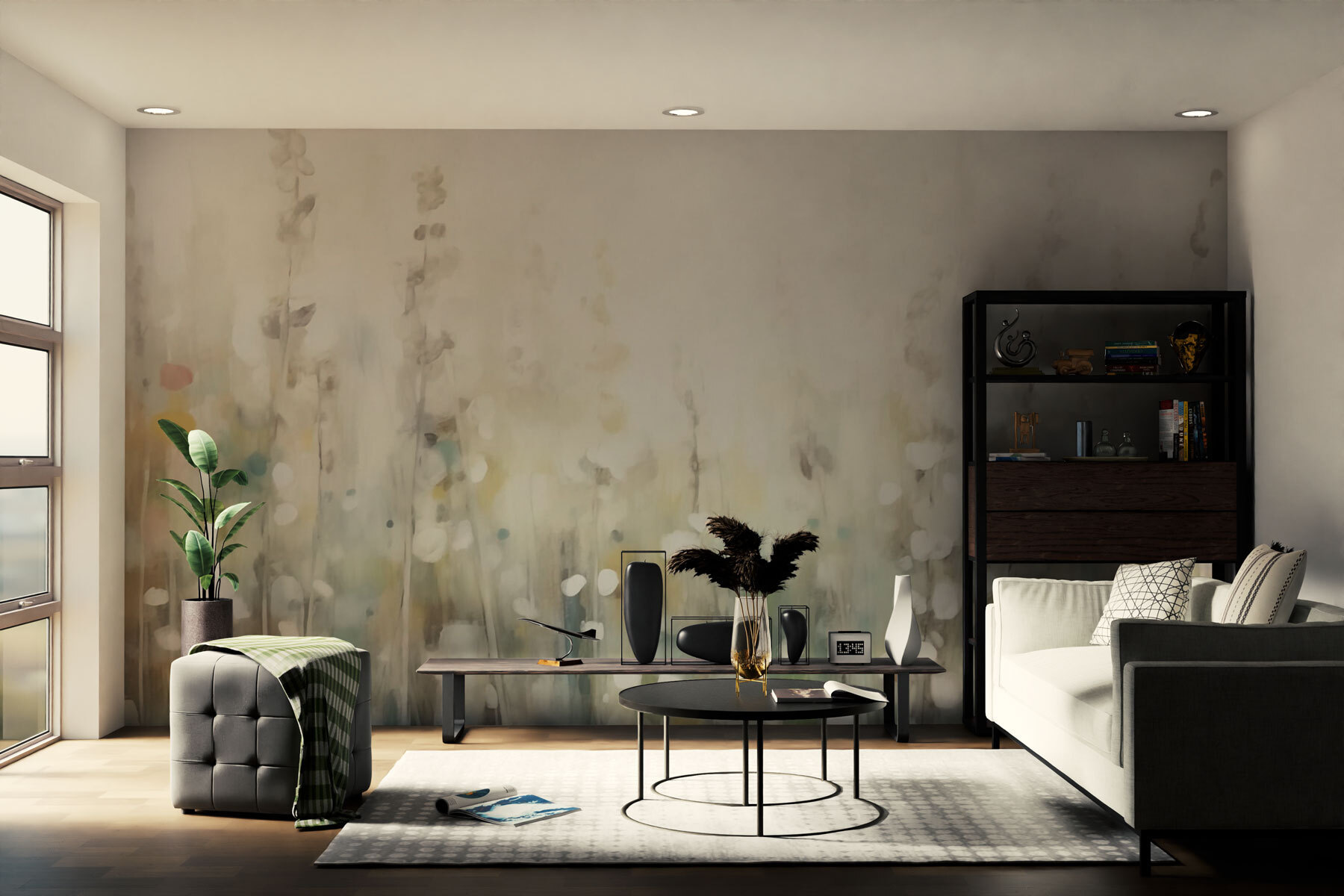 Guardate esattamente come apparirà il vostro spazio con la nuova carta da parati prima di acquistarla. Visualizzazione professionale da parte di designer esperti senza alcun costo o obbligo di acquisto.