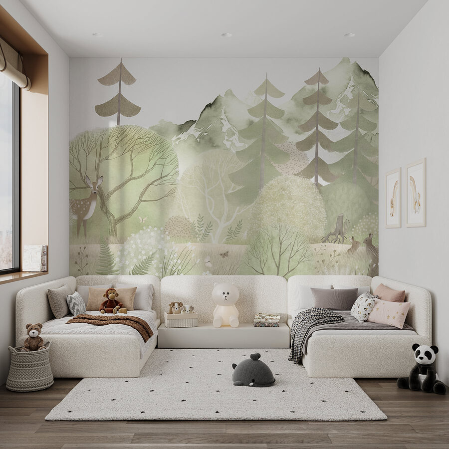 Immagina di entrare in un bosco tranquillo ogni volta che entri nel tuo spazio. Questo murale, “Cervo nella foresta”, cattura quel momento perfetto in cui la natura sussurra i suoi segreti. Immagina morbidi verdi, alberi delicati e un cervo curioso che sbircia tra il fogliame. È come avere una mini-foresta proprio a casa tua, senza bisogno di scarponcini da trekking!