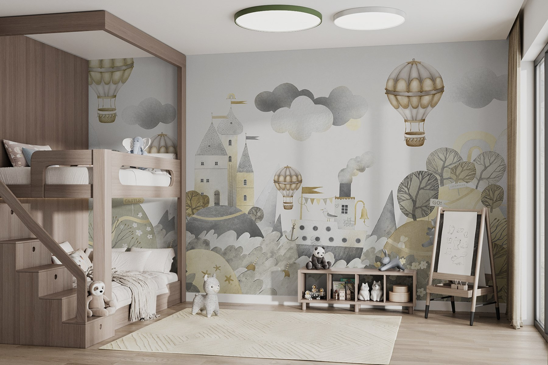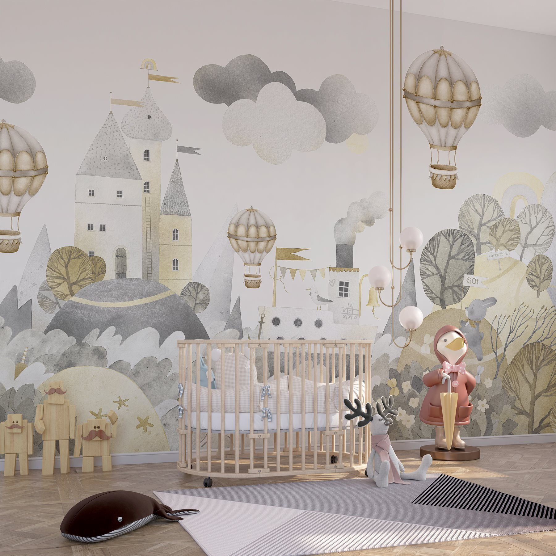 Trasforma una stanza in un’avventura stravagante con questo incantevole murale acquerellato raffigurante un castello da sogno e deliziose mongolfiere. Immagina i bambini che vagano per terre incantate, con la fantasia che vola alta come quelle mongolfiere. I colori tenui e i dettagli affascinanti creano un’atmosfera accogliente ma spaziosa, perfetta per le stanze dei giochi o le camerette dei bambini. Immagina quei momenti tranquilli, leggendo storie sotto lo sguardo di un castello amichevole. Potrai quasi sentire il dolce ronzio delle mongolfiere e le risate dei più piccoli mentre esplorano il loro nuovo regno. Ogni sguardo a questo murale promette una scintilla di gioia e ispirazione. Chi non vorrebbe immergersi in questa fiaba?