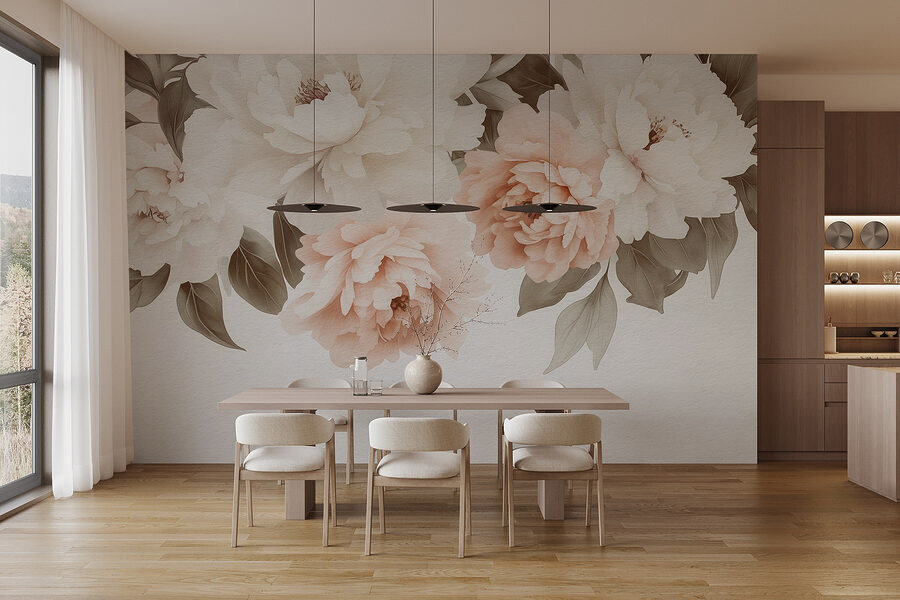 Trasformate qualsiasi stanza in un sereno rifugio in giardino con questo splendido murale con un sognante gruppo di fiori e foglie. Immaginate di svegliarvi ogni mattina con il dolce rossore delle peonie, con i loro colori tenui che sussurrano calore e comfort. Questo murale sembra portare un po’ di natura in casa, aggiungendo strati di fascino e un tocco di romanticismo. Perfetto per angoli accoglienti, angoli di lettura o anche per quella parete vuota che chiede attenzione. Non è solo una decorazione, ma crea un’atmosfera invitante in cui ci si può rilassare, come se si fosse annidati tra petali in fiore. Chi non si sentirebbe ispirato in uno spazio così bello?