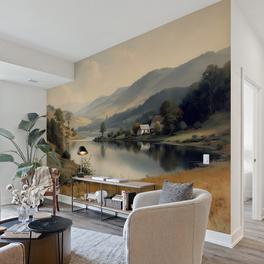 Trasformate una parete spenta in una fuga serena con questo splendido murale raffigurante un lago tranquillo, una casa incantevole e alberi gentili. Immaginate di sorseggiare un caffè, accoccolati sul vostro divano, mentre vi immergete in queste vibrazioni tranquille. Le tonalità tenui sussurrano “relax” e invitano alla calma nel vostro spazio. Immaginate una domenica mattina, con gli uccelli che cinguettano fuori e la luce che entra: è come avere una fetta di natura proprio nel vostro salotto. Perfetto per gli amanti della vita all’aria aperta o per chi ha bisogno di una piccola fuga in casa propria. Perché non portare una piccola fetta di serenità in casa?