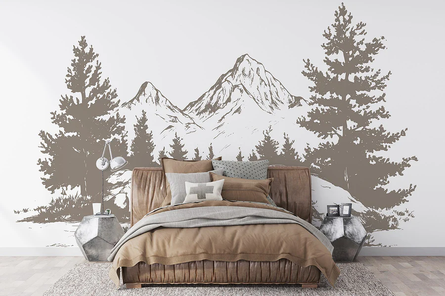 Trasformate qualsiasi spazio in un accogliente rifugio con questo murale che raffigura una serena catena montuosa circondata da alberi maestosi e rocce robuste. Immaginate di sorseggiare il caffè al mattino, sentendovi immersi nella natura senza uscire di casa. L’atmosfera che si respira è tranquilla, perfetta per rilassarsi dopo una lunga giornata. I toni morbidi e terrosi rendono accogliente qualsiasi ambiente, rendendolo uno sfondo ideale per le riunioni di famiglia o per le serate tranquille con un libro. Inoltre, è un ottimo spunto di conversazione: tutti amano la vista. Immergetevi nella natura e lasciate che questo murale vi porti in una piccola avventura ogni giorno.