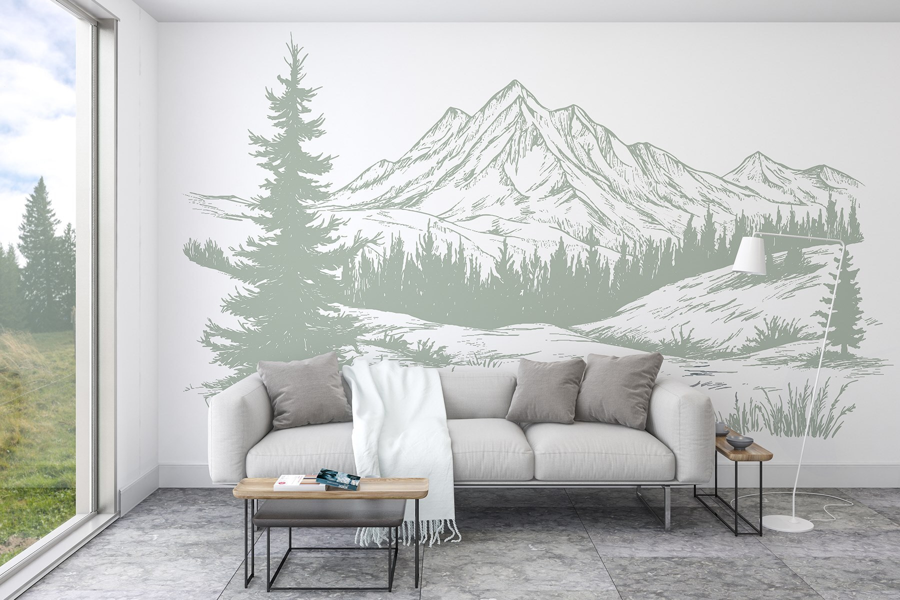 Trasformate qualsiasi stanza in un rifugio sereno con questo splendido murale di montagna. Immaginatevi una mattina accogliente con una tazza di caffè fumante e quest’opera d’arte che vi trascina nel tranquillo abbraccio della natura. Le dolci tonalità di verde sono come un abbraccio della natura, che porta un’atmosfera fresca alle quattro pareti. È perfetta per il salotto, l’ufficio di casa o anche per l’angolo in cui si realizzano i sogni. Immaginate le conversazioni che scatenerà o come vi farà sentire in un martedì in cui il caffè non è sufficiente. Questo murale? È più di un semplice decoro: è un intero stato d’animo.