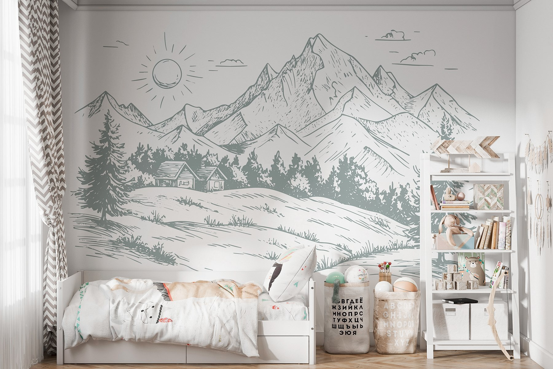 Trasformate qualsiasi spazio in una fuga serena con questo murale che raffigura un bellissimo paesaggio di alberi e montagne maestose. Immaginate di svegliarvi con i contorni morbidi della natura proprio in salotto o in camera da letto: è come una mini vacanza ogni giorno. I dettagli sottili e le linee delicate creano un’atmosfera rilassante, perfetta per rilassarsi dopo una lunga giornata o per ispirare la creatività. Immaginatevi gli amici che entrano, con gli occhi che si illuminano mentre ammirano l’atmosfera fresca e all’aria aperta. Non è solo un arredo, è una boccata d’aria fresca per le vostre pareti!