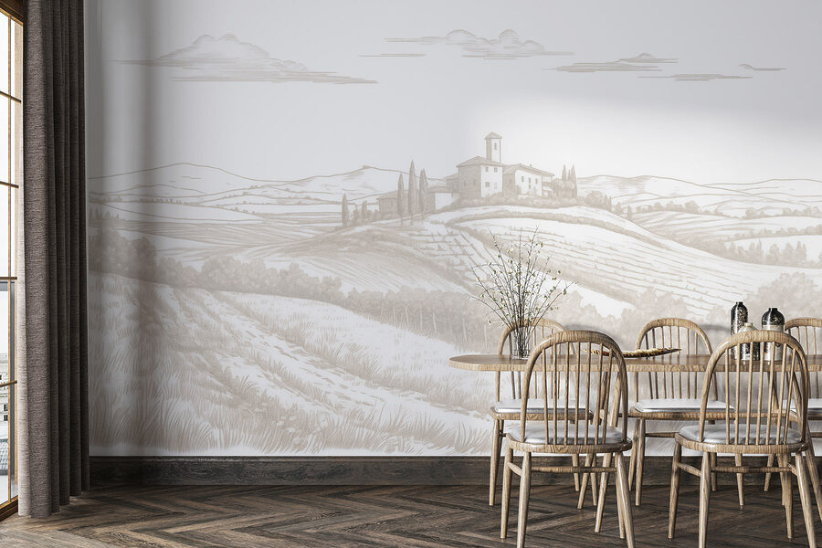 Trasformate il vostro spazio con questo accattivante murale, “Paesaggio con casa e campi”. È come portare una fetta di campagna direttamente a casa vostra, senza bisogno di un trattore. Immaginatelo: morbide colline, un’incantevole casetta e campi che ondeggiano nella brezza. È sereno, invitante e farà sentire calme e raccolte anche le stanze più affollate.