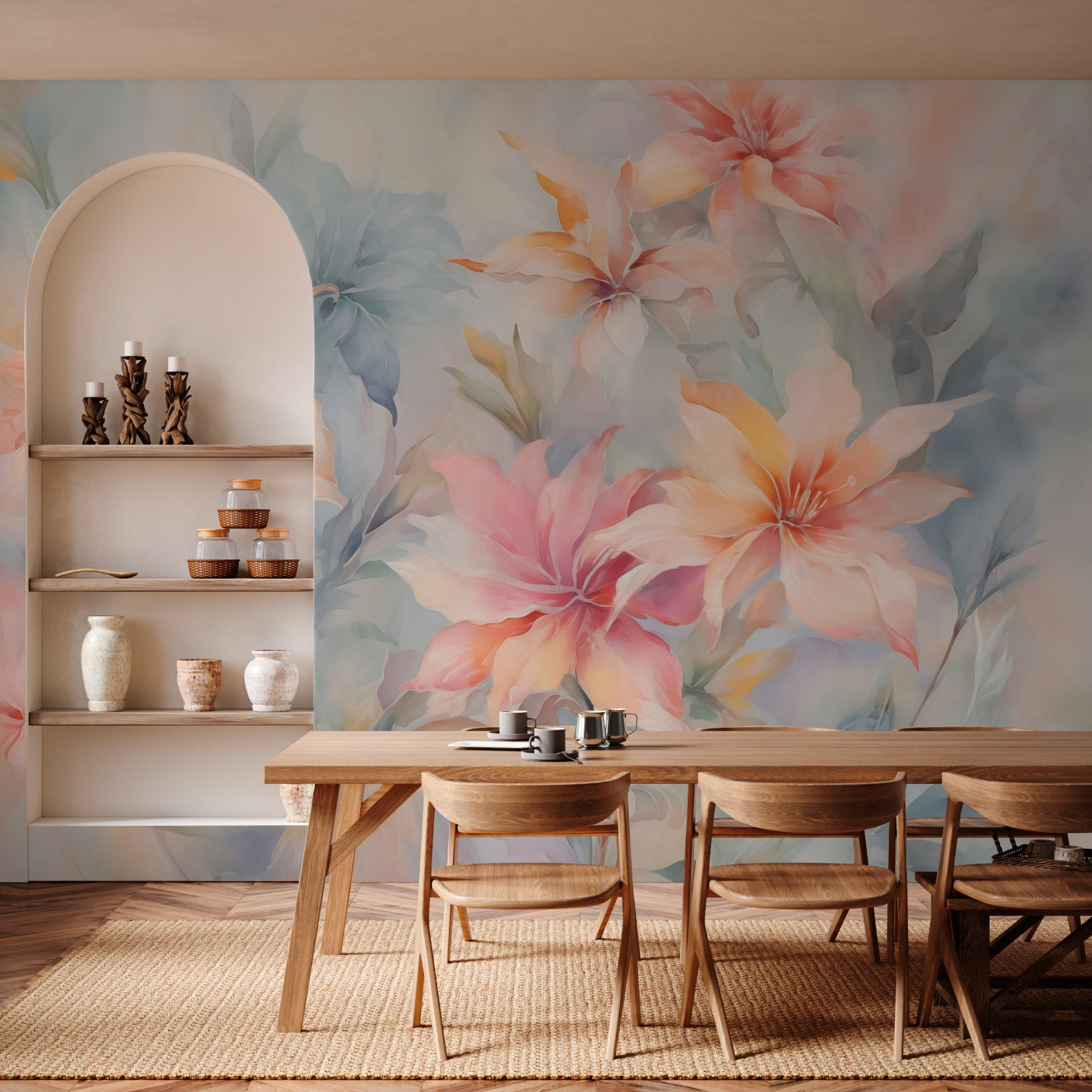 Trasformate qualsiasi spazio con questo splendido murale con un delizioso bouquet di fiori. È come portare un giardino in casa senza preoccuparsi di annaffiare! Lo stile morbido dell’acquerello ondeggia in tonalità delicate, creando un’atmosfera calma e invitante, perfetta per un angolo accogliente o un soggiorno vivace. Immaginate di sorseggiare un tè mentre vi crogiolate nella sua bellezza: chi non si sentirebbe ispirato? Inoltre, è un ottimo spunto di conversazione. Gli amici non vedranno solo fiori, ma si sentiranno come in un sogno ad occhi aperti. La natura è a portata di mano!
