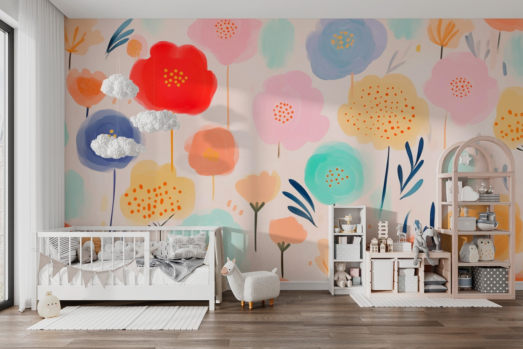 Trasformate una parete spenta in un paradiso fiorito con questo vivace murale che presenta fiori colorati su un morbido sfondo bianco. Immaginate di entrare in un giardino vibrante ogni volta che entrate nella stanza, circondati da allegre fioriture. È come portare la gioia della primavera in casa, senza bisogno di annaffiare! Perfetto per lo spazio di un bambino o anche come accento giocoso in un accogliente angolo lettura. Ogni petalo sembra sussurrare: “Divertiamoci!”. Il design stravagante di questo murale aggiunge un tocco di personalità, rendendo ogni spazio immediatamente più luminoso e invitante. Inoltre, è un modo semplice per stimolare l’immaginazione e la creatività. Chi non vorrebbe sognare ad occhi aperti tra questi deliziosi fiori?