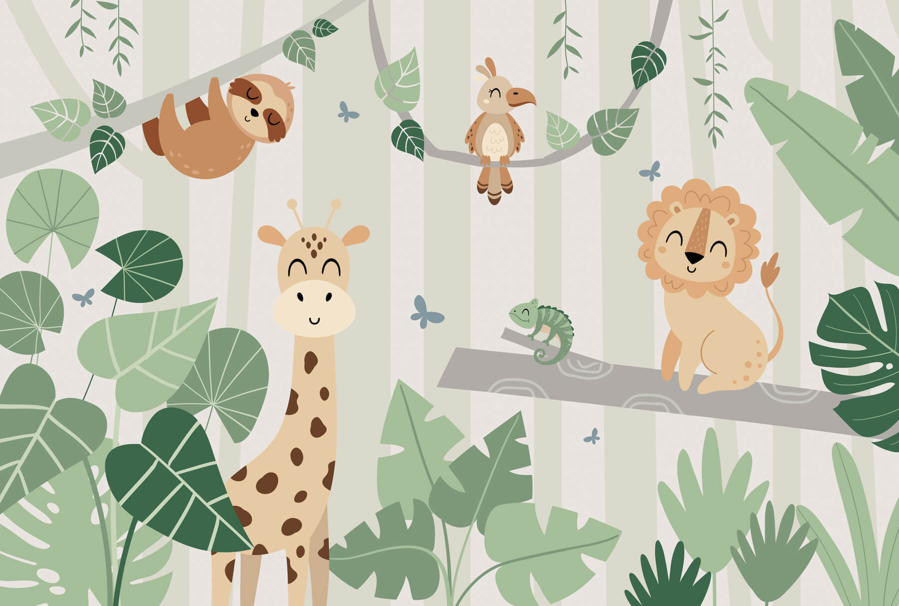 Trasformate qualsiasi spazio con questo delizioso murale della giungla, caratterizzato da un affascinante cast di personaggi animali, tra cui un’allegra giraffa, un rilassato bradipo e un giocoso leone. È come entrare in un paradiso giocoso ogni volta che si entra nella stanza. Immaginate i bambini che ridono circondati dalla vegetazione lussureggiante e dai loro amici pelosi: potrebbero persino fingere di essere esploratori in un emozionante safari! Ogni dettaglio conferisce un senso di divertimento e meraviglia, perfetto per stimolare l’immaginazione. Questo murale non solo illumina le pareti, ma conferisce anche un’atmosfera spensierata al momento del gioco, della nanna o in qualsiasi altro momento. Chi non vorrebbe un rifugio nella giungla a casa propria?