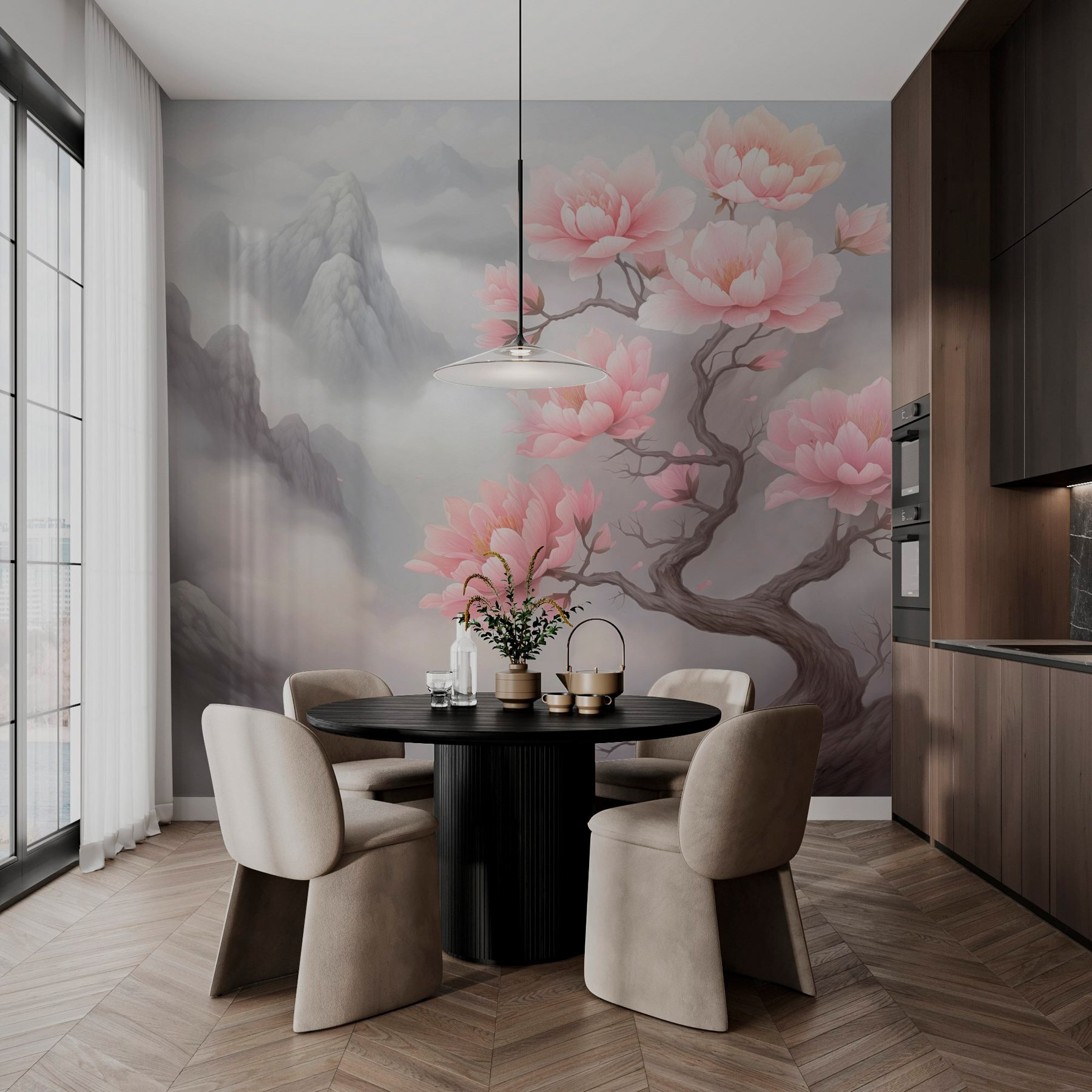 Trasformate qualsiasi stanza con l’incantevole “Murales albero con fiori rosa”. Immaginate di entrare ogni giorno in un’oasi di pace, dove i fiori rosa sbocciano sullo sfondo di montagne nebbiose. È come avere un pezzo di natura proprio sulla parete, che invita al calore e alla serenità nel vostro spazio.