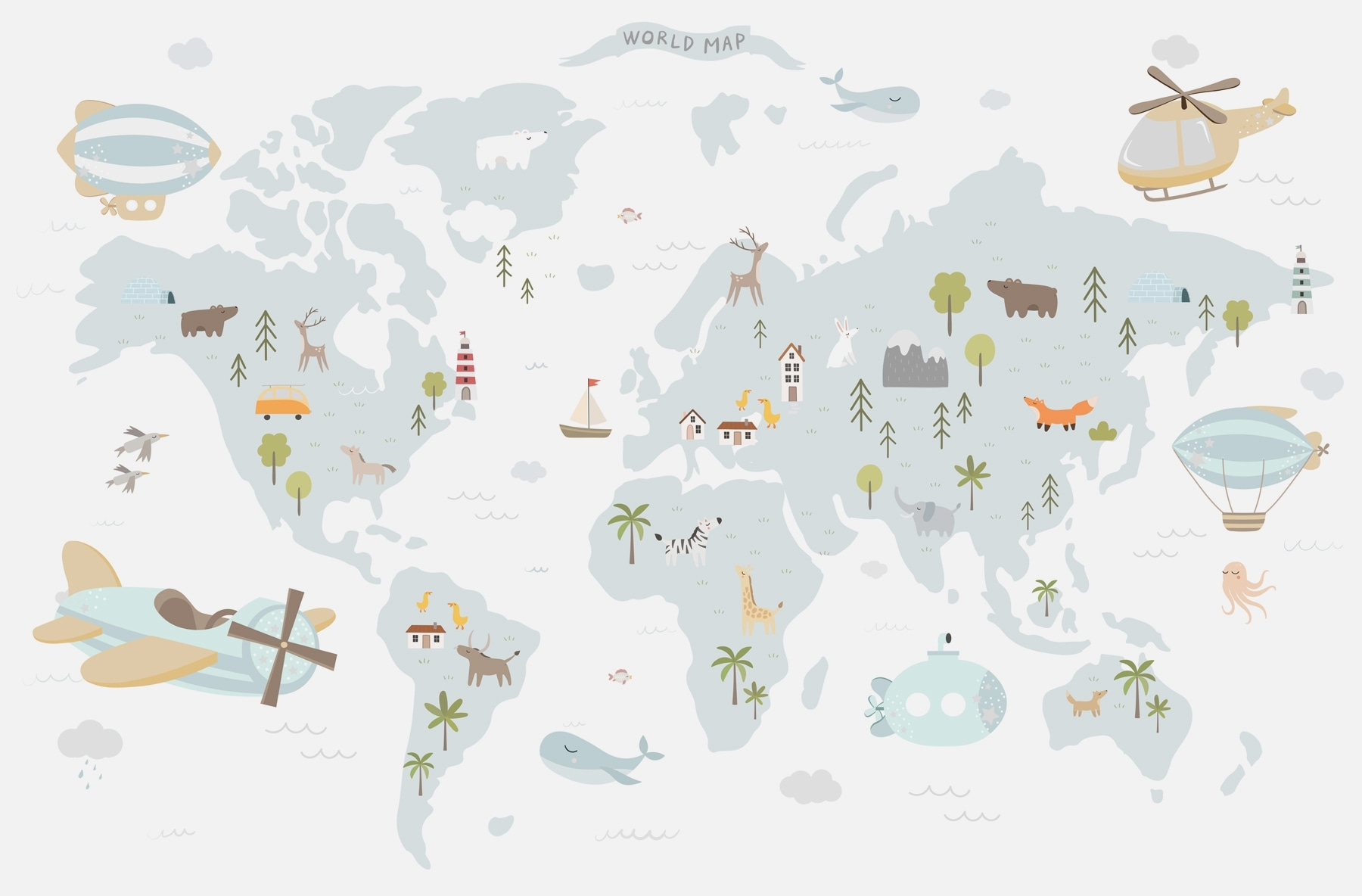 Trasformate il vostro spazio con il fascino stravagante del Carta da parati Map of the World. Questo delizioso murale vi porta in viaggio attraverso i continenti senza bisogno di passaporto. Immaginate i volti dei bambini che si illuminano nel vedere animali giocosi, barche a vela e persino mongolfiere sparse per il mondo. È come una mini-avventura proprio sulla vostra parete! Questo murale non è solo bello: è un argomento di conversazione che fa sognare luoghi lontani. Perfetto per la stanza di un bambino o per un’area di gioco vivace, porterà sicuramente sorrisi e forse anche un po’ di ispirazione per futuri esploratori. Chi non vorrebbe sognare in grande con uno sfondo così allegro?
