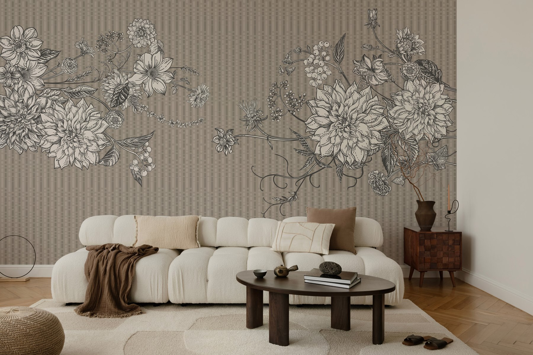 Trasformate qualsiasi stanza in un rifugio accogliente con questo splendido murale: Eleganza floreale in un design armonioso. Immaginate quei fiori splendidamente disegnati che si srotolano davanti ai vostri occhi, mescolando toni morbidi e terrosi con dettagli intricati. È come portare un giardino in casa, senza starnutire. Immaginate di svegliarvi ogni giorno con questa graziosa fioritura che vi sbircia, sollevando immediatamente il vostro umore. Che si tratti di un angolo tranquillo per la lettura o di quella parete scomoda che tutti sembrano ignorare, questo murale ruba la scena. Chi avrebbe mai immaginato che l’arredamento floreale potesse essere così rinfrescante?