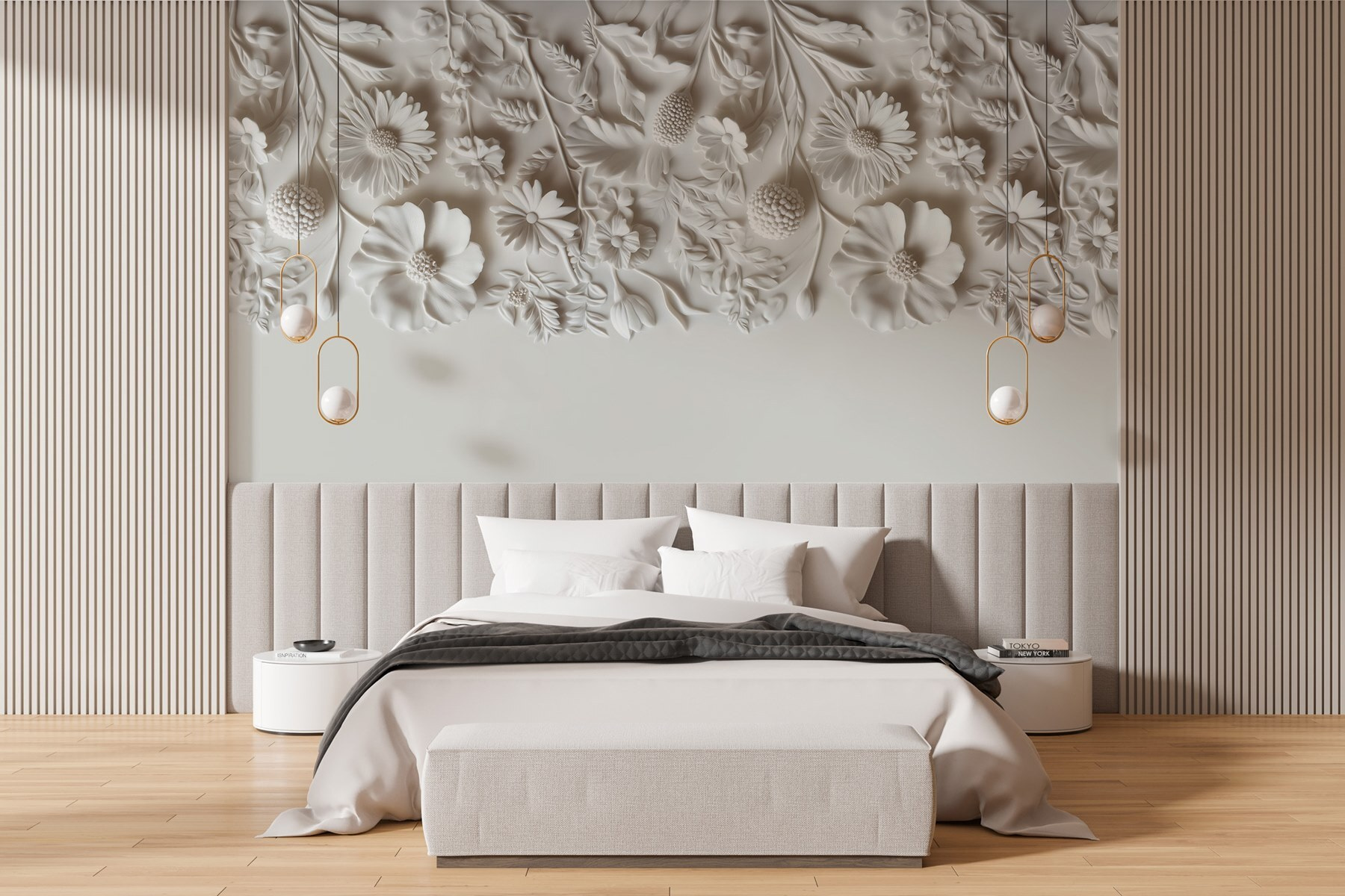 Trasformate qualsiasi spazio in un giardino sereno con questo stravagante murale floreale bianco. Immaginate di entrare nella vostra stanza e di sentirvi circondati da fiori che sbocciano dolcemente, ognuno dei quali racconta una piccola storia di primavera. I delicati motivi infondono vita alle pareti, invitando al calore e alla calma, perfetti per le notti in casa.