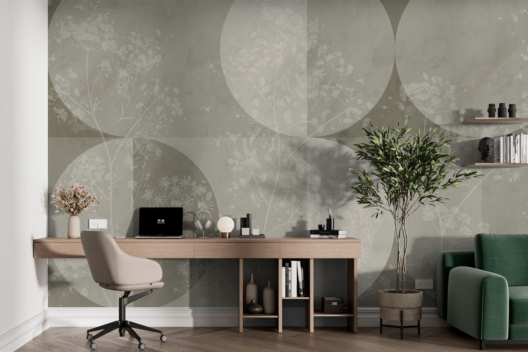 Trasformate il vostro spazio con questo accattivante murale che fonde senza sforzo una tavolozza di grigi e bianchi, con cerchi delicati e fiori giocosi. Immaginate di svegliarvi con questo sfondo morbido e sognante, che in qualche modo fa sembrare ogni tazza di caffè un’occasione speciale. È come avere un sereno giardino all’aperto nel proprio salotto. L’effetto acquerello aggiunge un tocco di estrosità, come se ogni fiore ondeggiasse dolcemente al soffio della brezza. Perfetta per un angolo accogliente o per uno spazio di lavoro creativo, trasmette un’atmosfera serena che dice semplicemente: “Rilassati, hai tutto sotto controllo”. Che si tratti di ospitare amici o di godersi momenti di solitudine, questo murale aggiunge un’atmosfera edificante, come un caldo abbraccio per le vostre pareti.