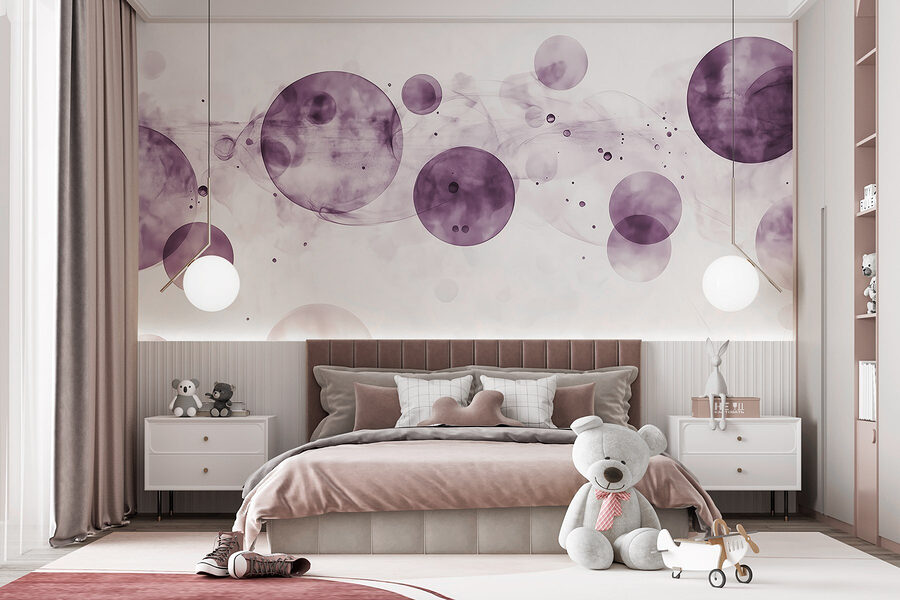Trasformare una stanza? Questo murale, con i suoi cerchi viola vorticosi e il fumo sognante su uno sfondo bianco, aggiunge un tocco di estrosità che invita a sognare a occhi aperti. Immaginate di entrare in uno spazio in cui le pareti sembrano danzare con i colori, facendo sentire speciali anche i momenti più banali. Gli amici entreranno, faranno una doppia occhiata e chiederanno da dove viene la magia. È perfetto per creare un’atmosfera rilassante in un salotto o un’esplosione di ispirazione in un angolo creativo. Lasciate che siano i cerchi a parlare: sono un morbido promemoria del fatto che l’arte può essere giocosa, proprio come la vita.