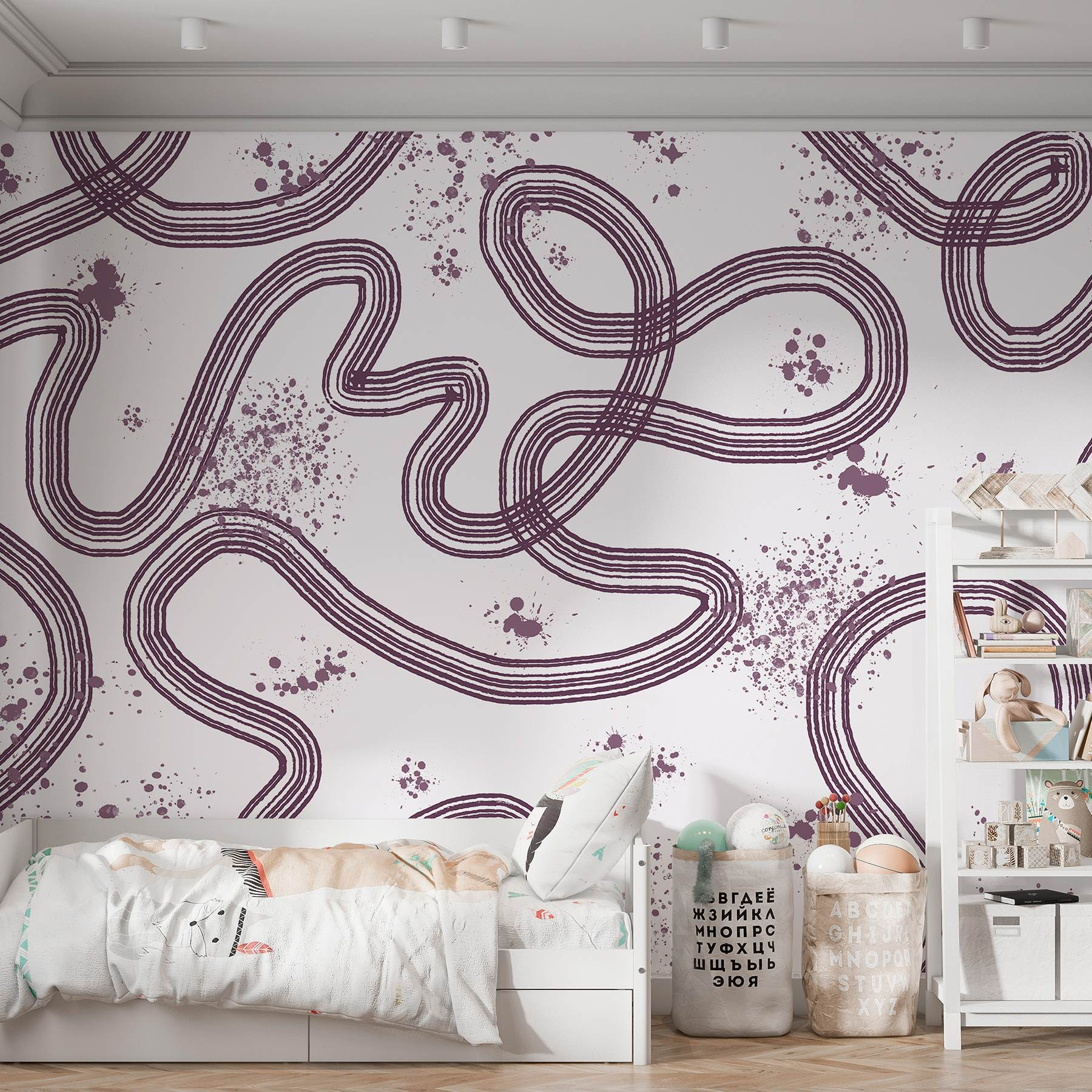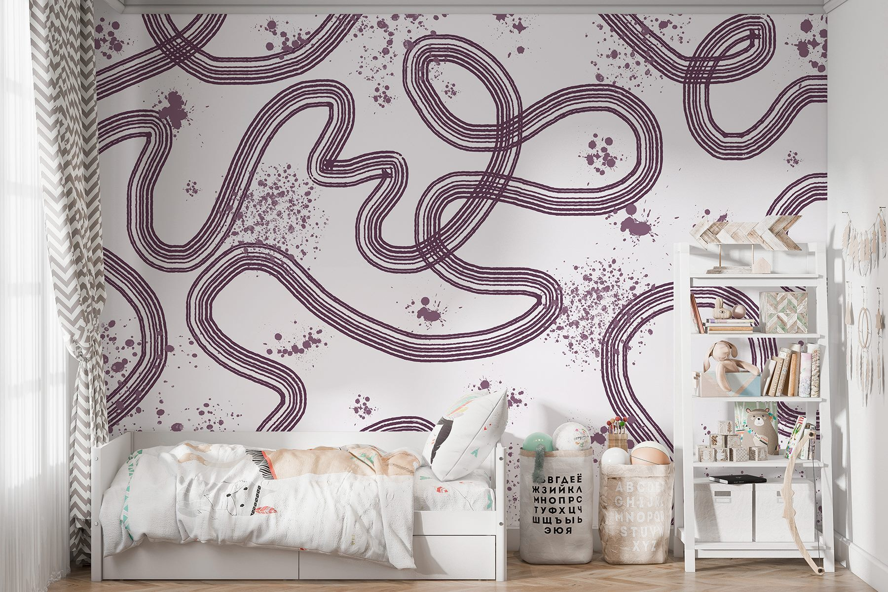Trasformate una parete spenta in una tela di creatività con questo murale caratterizzato da linee e macchie giocose. È come uno scarabocchio astratto che dona un senso di vivacità a qualsiasi stanza. Immaginate di entrare nel vostro spazio e di trovarvi di fronte a una parete noiosa, invece che a un’opera di conversazione. Le delicate volute e gli schizzi creano un’atmosfera invitante, rendendolo perfetto per qualsiasi ambiente, dagli accoglienti angoli di lettura ai salotti eleganti. Ha la giusta dose di estrosità per accendere l’allegria, senza chiedere l’attenzione. Quindi, fate pure, portate un po’ di funk su quelle pareti!
