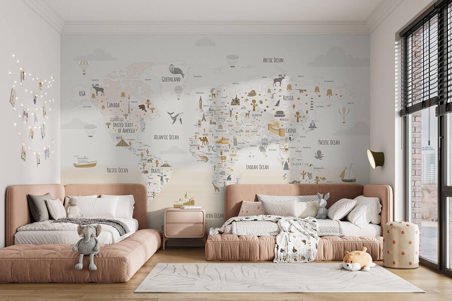 Trasformate qualsiasi spazio in una piccola zona d’avventura con il Carta da parati Map of the World. Immaginatevi i bambini seduti a gambe incrociate, con gli occhi che brillano, mentre tracciano con le dita i continenti e gli oceani. Questo murale non è solo arte: è un invito a esplorare e imparare. Con illustrazioni giocose di animali e punti di riferimento iconici, stimola la curiosità e accende l’immaginazione. Che si tratti di una cameretta o di un angolo studio, aggiunge un tocco di estrosità che fa sembrare ogni sguardo una mini-fuga. E chi lo sa? Magari ispirerà qualche futuro giramondo! Ravvivate le pareti e lasciate che la voglia di viaggiare abbia inizio!