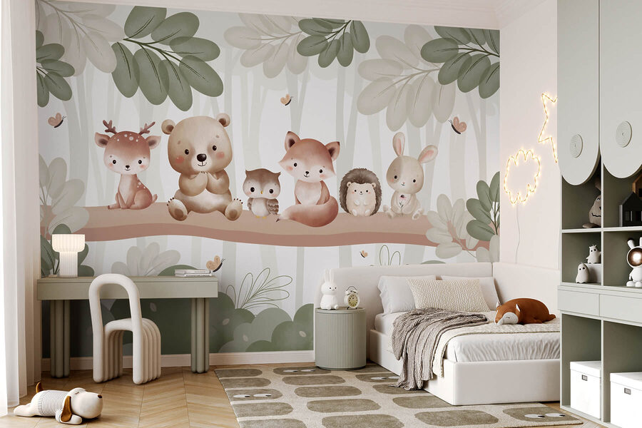 Immaginate un angolo accogliente con il fascino di un paese delle meraviglie. Questo delizioso murale presenta un adorabile gruppo di amici animali appollaiati su un ramo, pronti a dare un tocco di allegria a qualsiasi spazio. Immaginate un timido cervo, un orso curioso e una volpe giocosa, tutti annidati tra le foglie verdi. È lo sfondo perfetto per la stanza di un bambino, che può raccontare storie di avventure nella foresta magica. Ogni sguardo invita alle risate e all’immaginazione, creando un calore che avvolge come una coperta preferita. Trasformate l’ordinario in qualcosa di veramente speciale con questi simpatici amici della foresta!