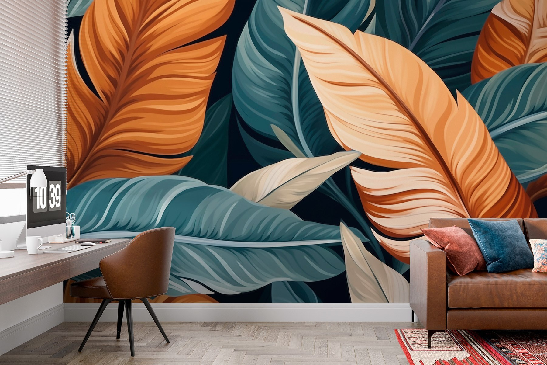 Trasformate il vostro spazio con questo murale dal fogliame vibrante che sembra una passeggiata in un paradiso tropicale. Immaginate di entrare nella vostra stanza e di essere accolti da foglie lussureggianti dai colori ricchi e terrosi: è come invitare la natura all’interno. Questo murale non è solo bello da vedere, ma trasmette un senso di calma e calore. Perfetto per quella parete vuota che avete adocchiato, aggiunge profondità senza invadere la stanza. Gli amici potrebbero persino chiedervi se vi siete trasferiti ai tropici! È più di un arredamento: è uno stato d’animo, un’atmosfera e un pizzico di gioia nella vita di tutti i giorni.