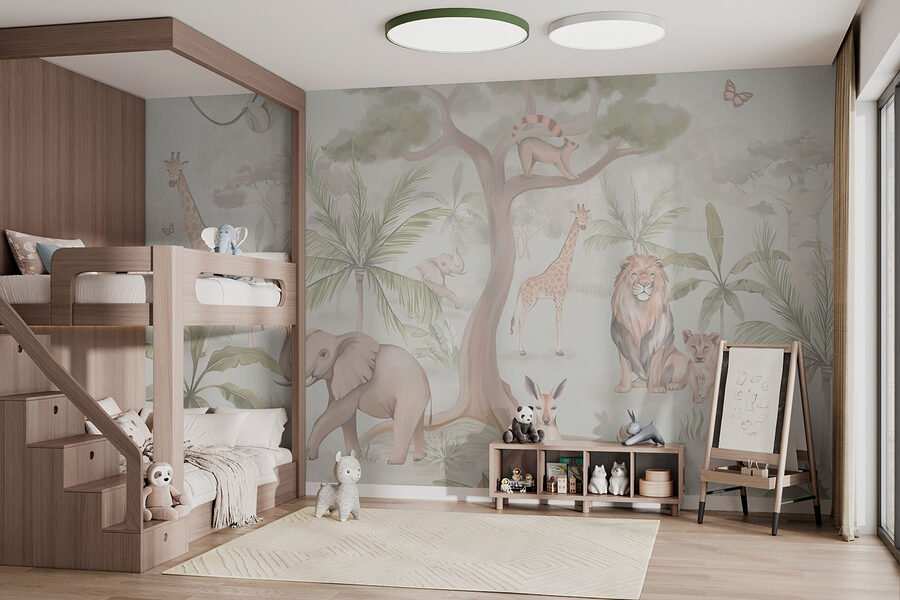 Trasformate qualsiasi stanza in un’incantevole fuga con questo delizioso murale che presenta un delicato mix di animali e verde lussureggiante. Immaginate un elefante che si diverte, un bradipo che si rilassa su un albero e giraffe che sbirciano tra le palme: è come fare un mini safari a casa vostra! Questo murale invita al calore e all’estro, rendendolo perfetto per le camerette o per un accogliente angolo lettura. Immaginate di sorseggiare un tè circondati dalla natura, di sentire la brezza fresca e magari di ascoltare il canto di un uccello lontano. Ogni sguardo porta con sé un pizzico di avventura e un sorriso! Perfetto per chi ama l’arredamento unico e un tocco di natura selvaggia nella propria vita.