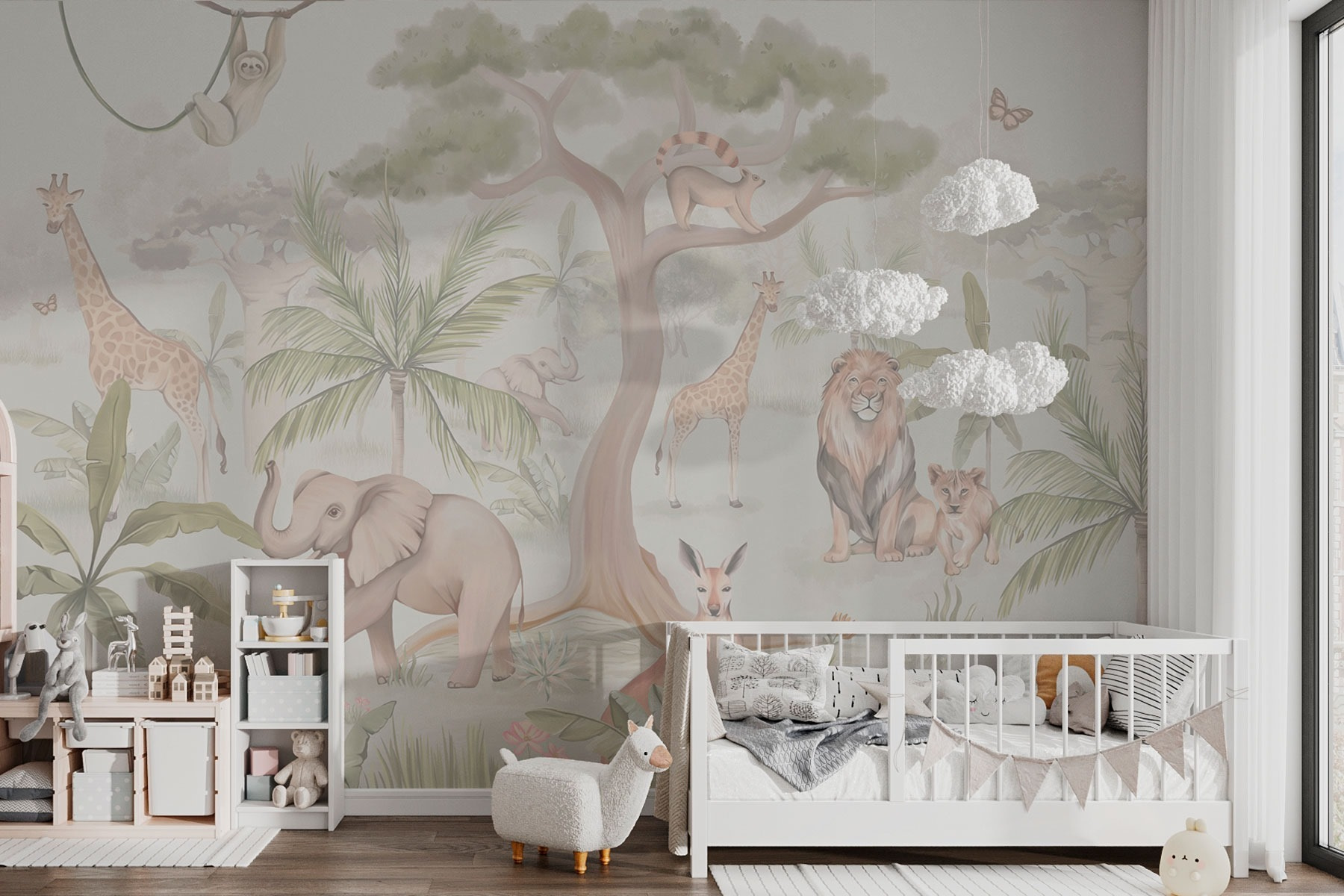 Trasformate qualsiasi stanza in un’incantevole fuga con questo delizioso murale che presenta un delicato mix di animali e verde lussureggiante. Immaginate un elefante che si diverte, un bradipo che si rilassa su un albero e giraffe che sbirciano tra le palme: è come fare un mini safari a casa vostra! Questo murale invita al calore e all’estro, rendendolo perfetto per le camerette o per un accogliente angolo lettura. Immaginate di sorseggiare un tè circondati dalla natura, di sentire la brezza fresca e magari di ascoltare il canto di un uccello lontano. Ogni sguardo porta con sé un pizzico di avventura e un sorriso! Perfetto per chi ama l’arredamento unico e un tocco di natura selvaggia nella propria vita.