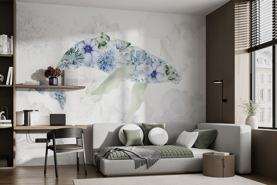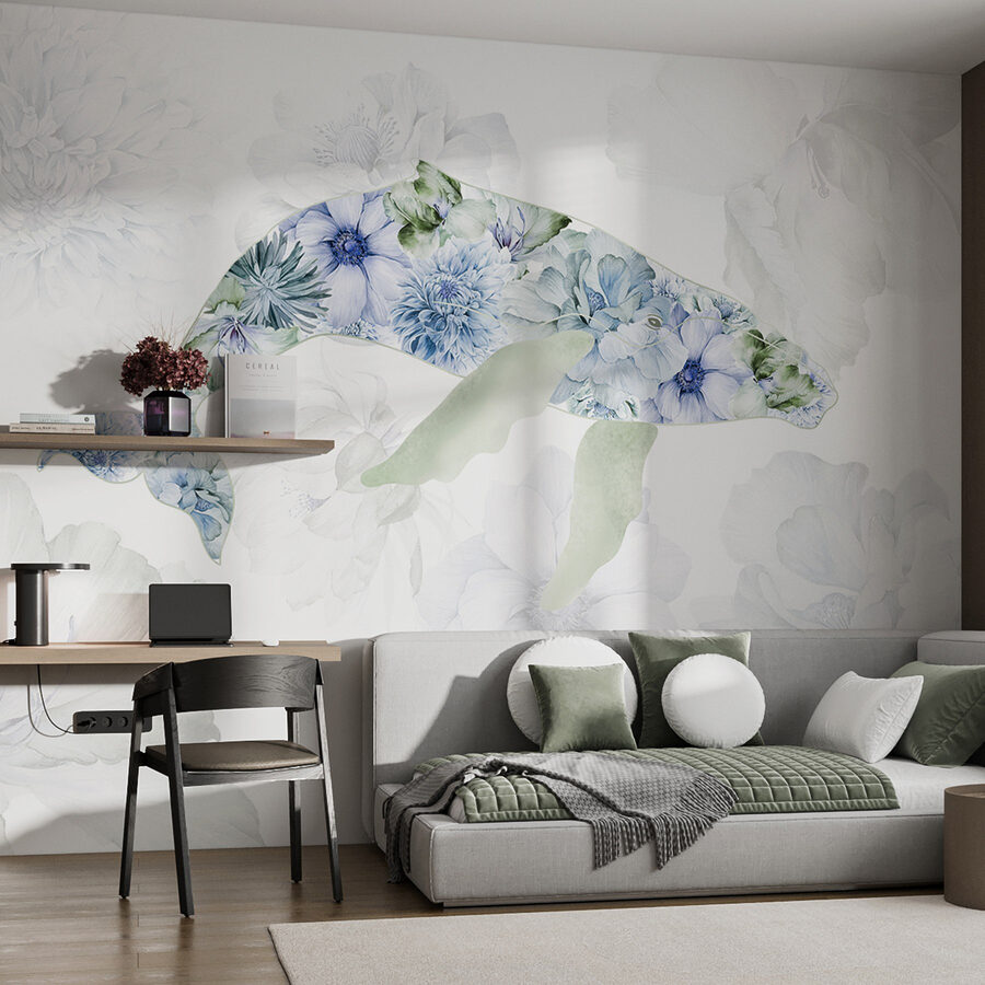 Trasformate il vostro spazio con questo incantevole murale con una balena che scoppia di fiori giocosi. Immaginate di entrare in una stanza e di sentire immediatamente la calma del mare e l’estrosità di un giardino. Le tonalità tenui e i petali delicati invitano a un’atmosfera morbida e serena, perfetta per un accogliente angolo lettura o anche per una giocosa stanza dei bambini. È come avere un pezzo di natura proprio sulla parete, che cattura la gioia della vita oceanica e la bellezza floreale. Immaginate gli amici che lo ammirano e che vi chiedono dove avete trovato un tale gioiello. Tuffatevi e lasciate che il murale dia vita alle vostre pareti!